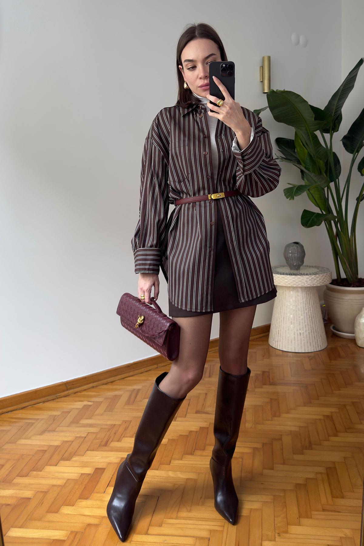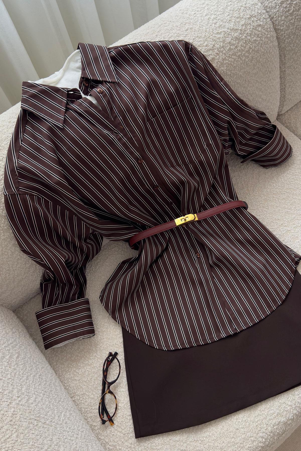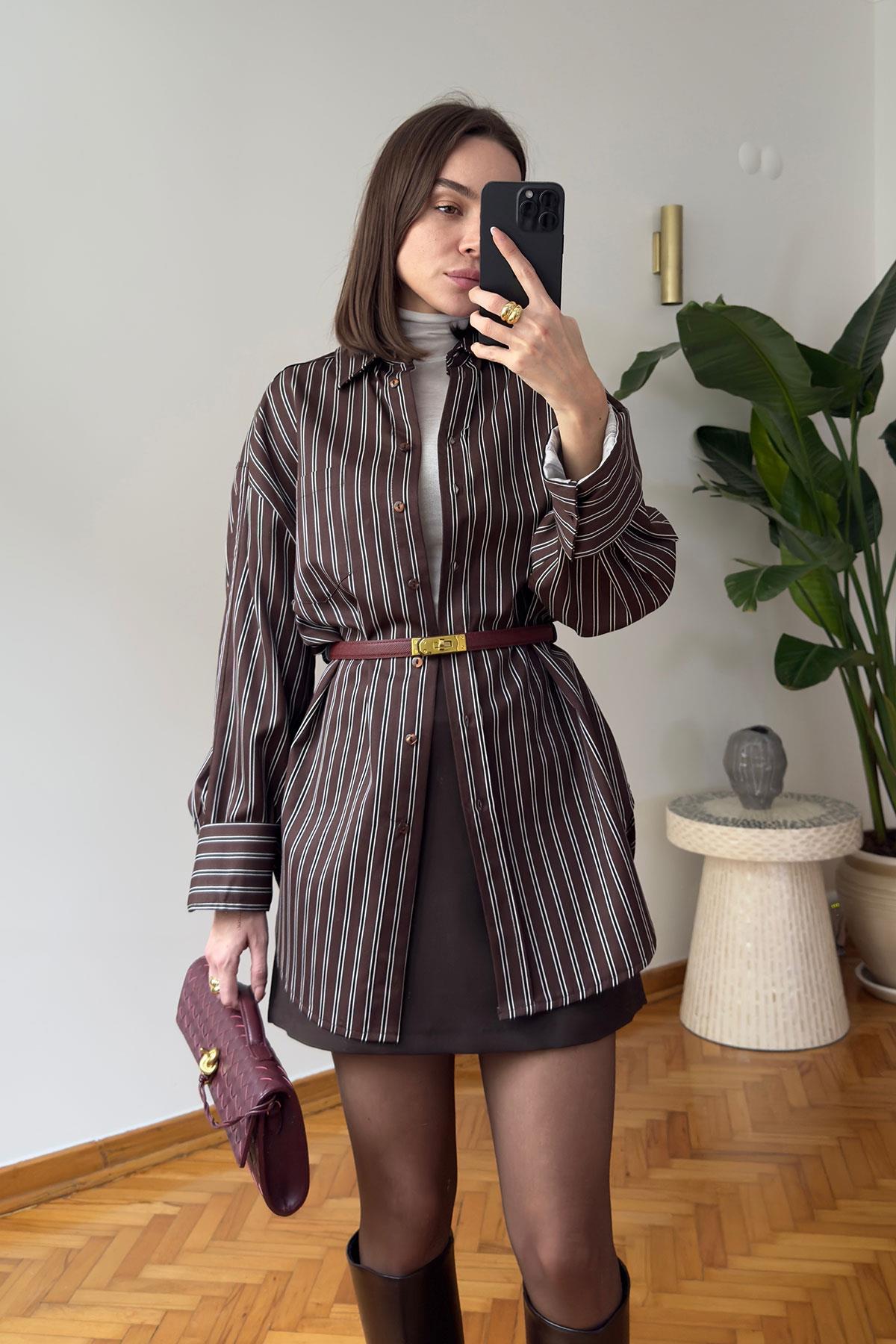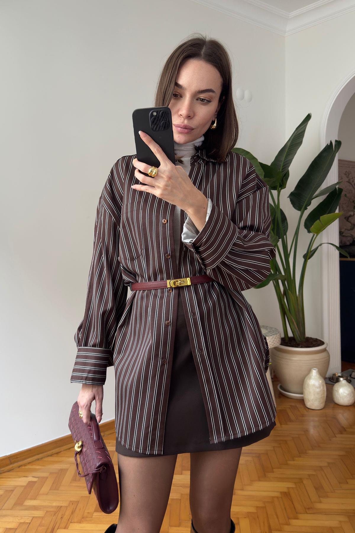 Cep Detay Oversize Yeni Sezon Gömlek- KAHVERENGİ (HT09227-111)