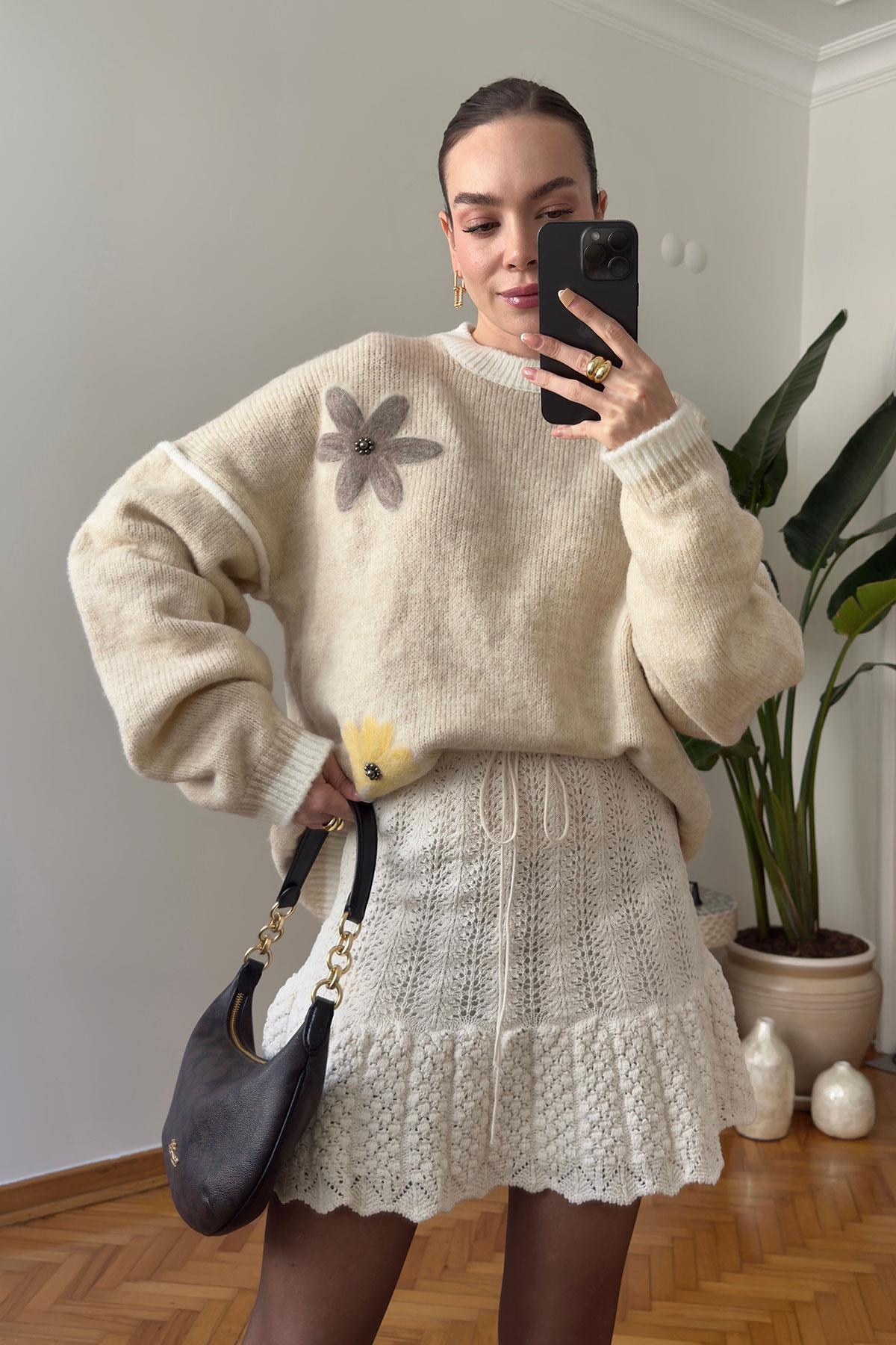 Çiçek Detay Orj Triko Kazak- TAŞ (HS0011-165)