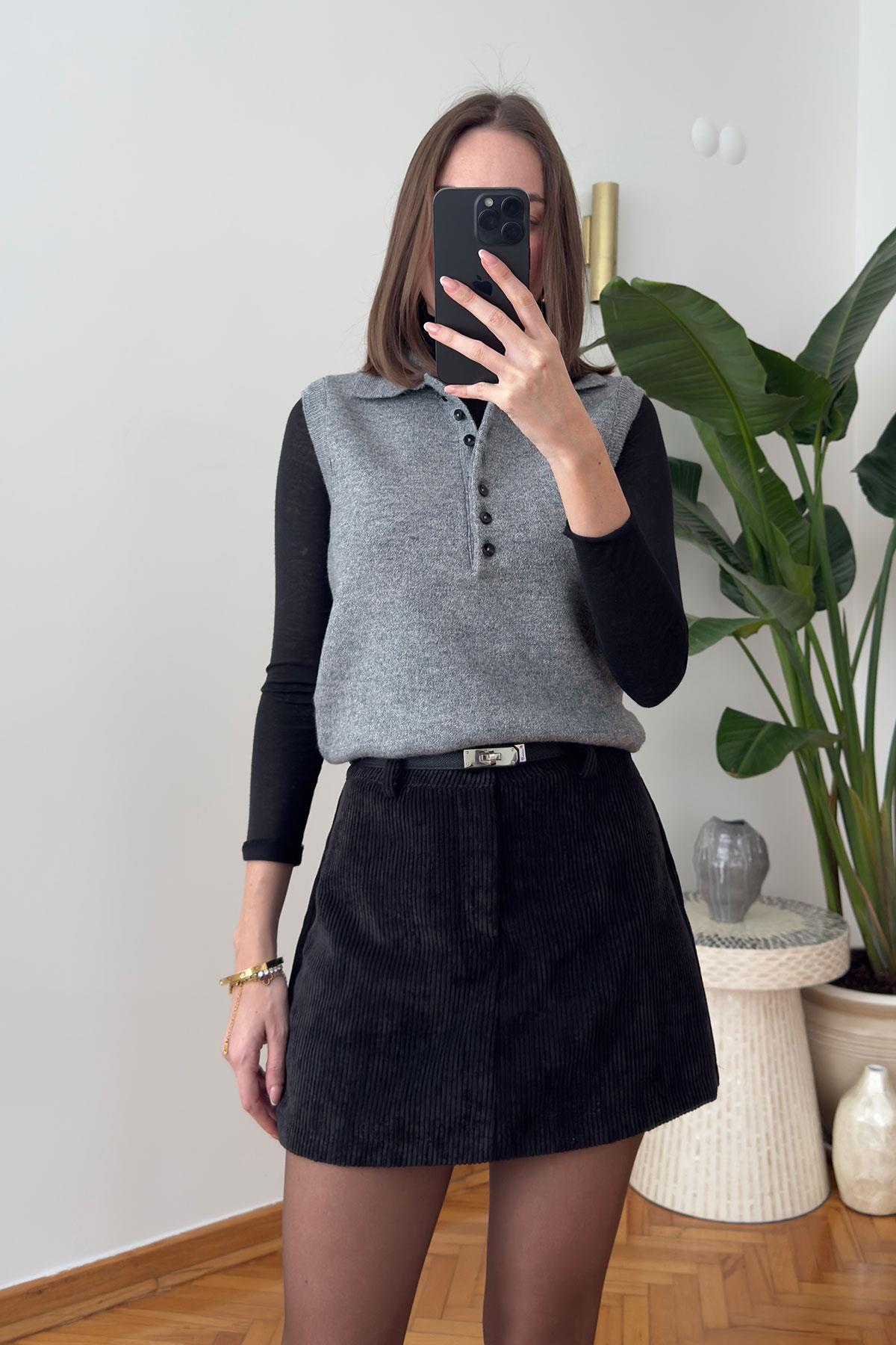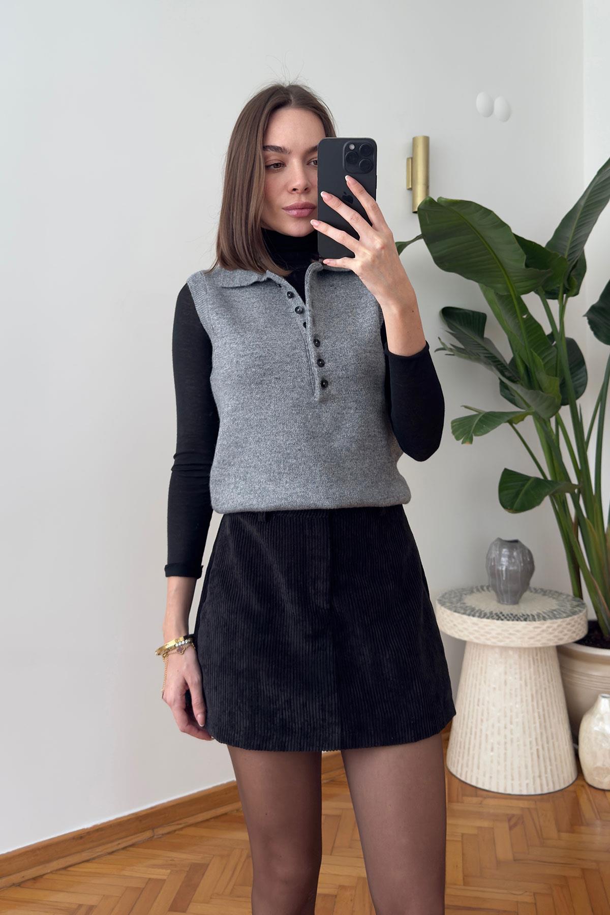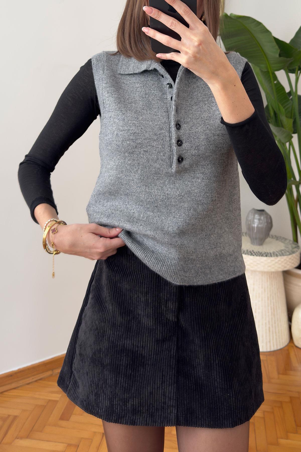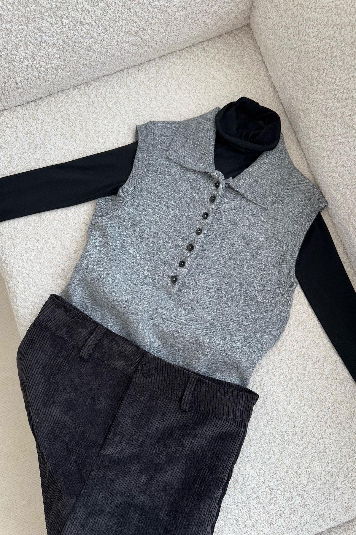 Düğmeli Kolsuz Premium Kazak- SİYAH Düğmeli Kolsuz Premium Kazak- GRİ