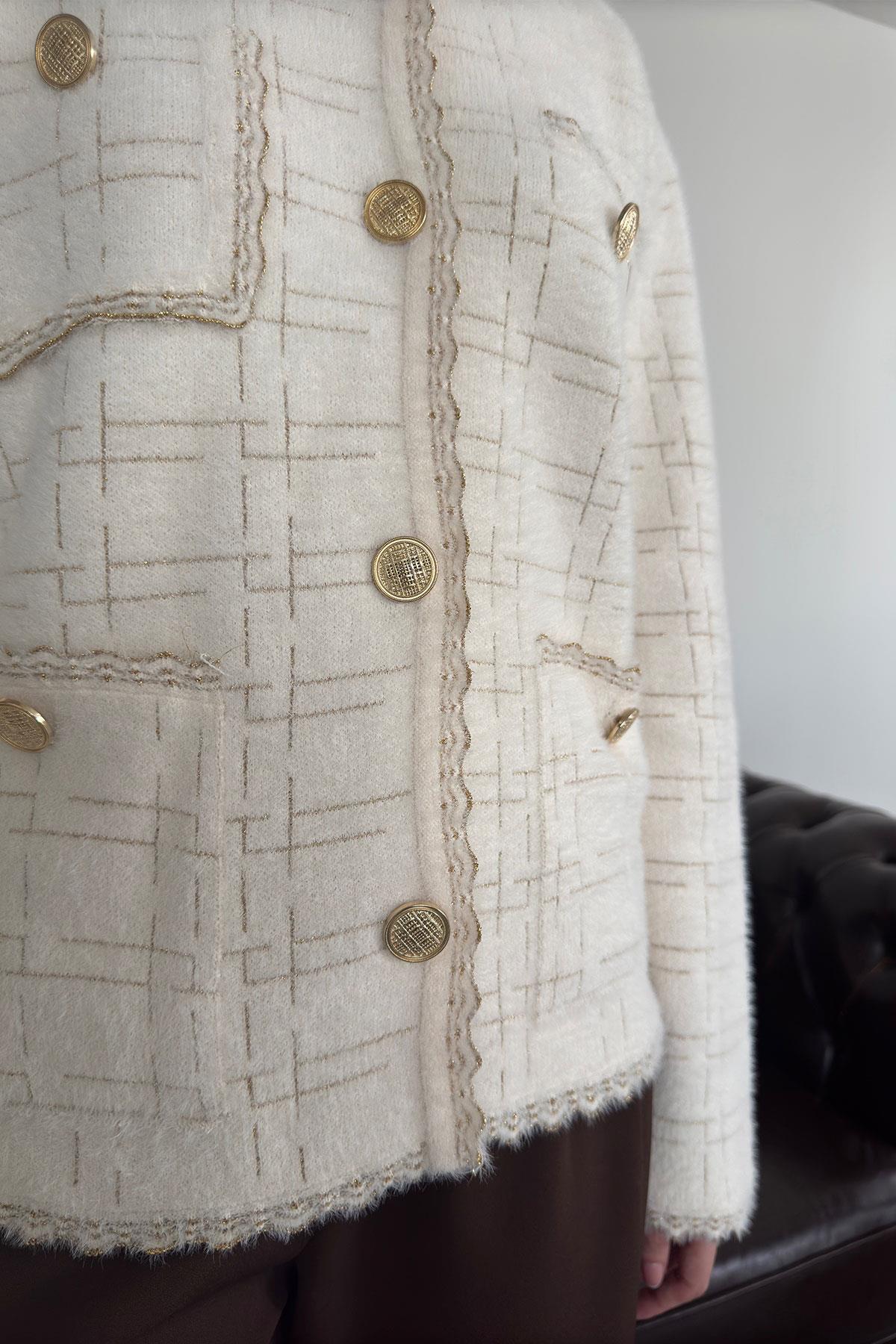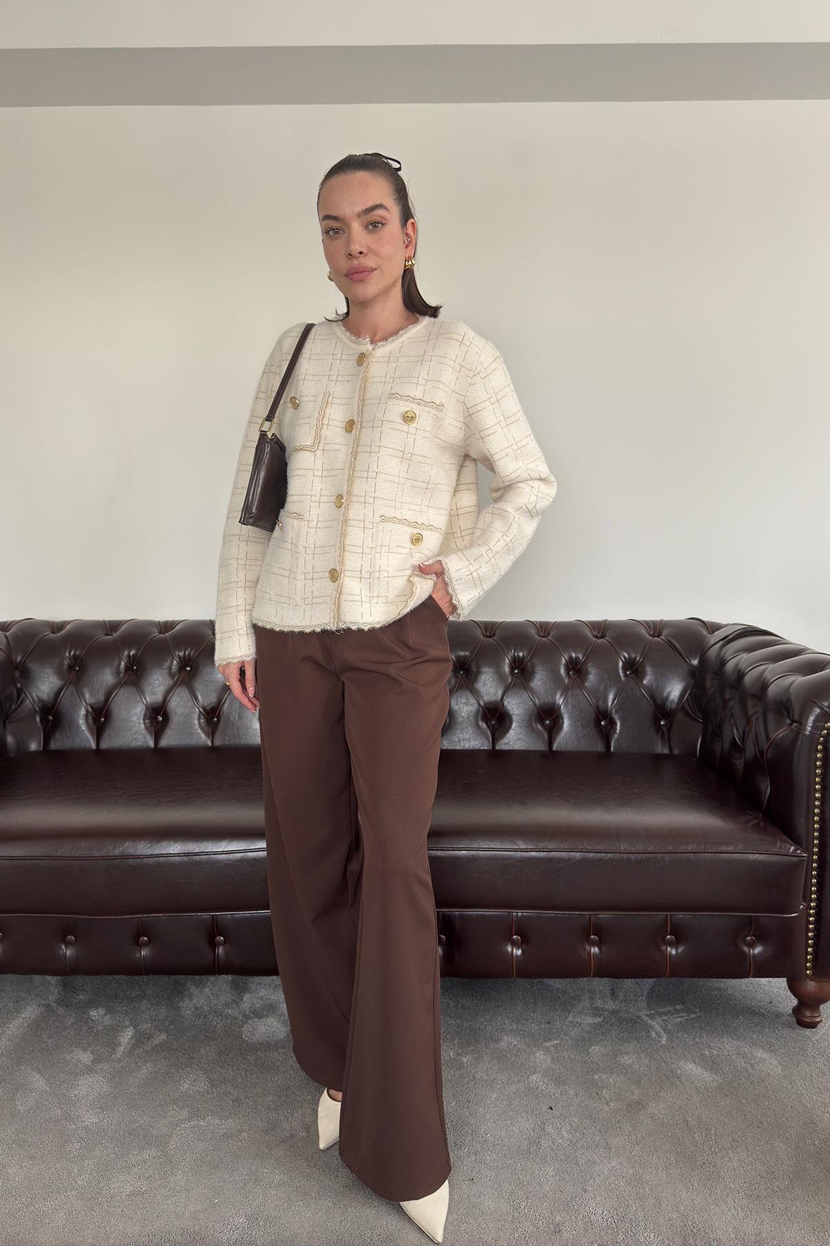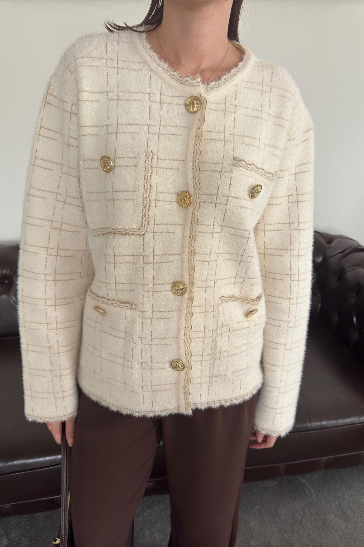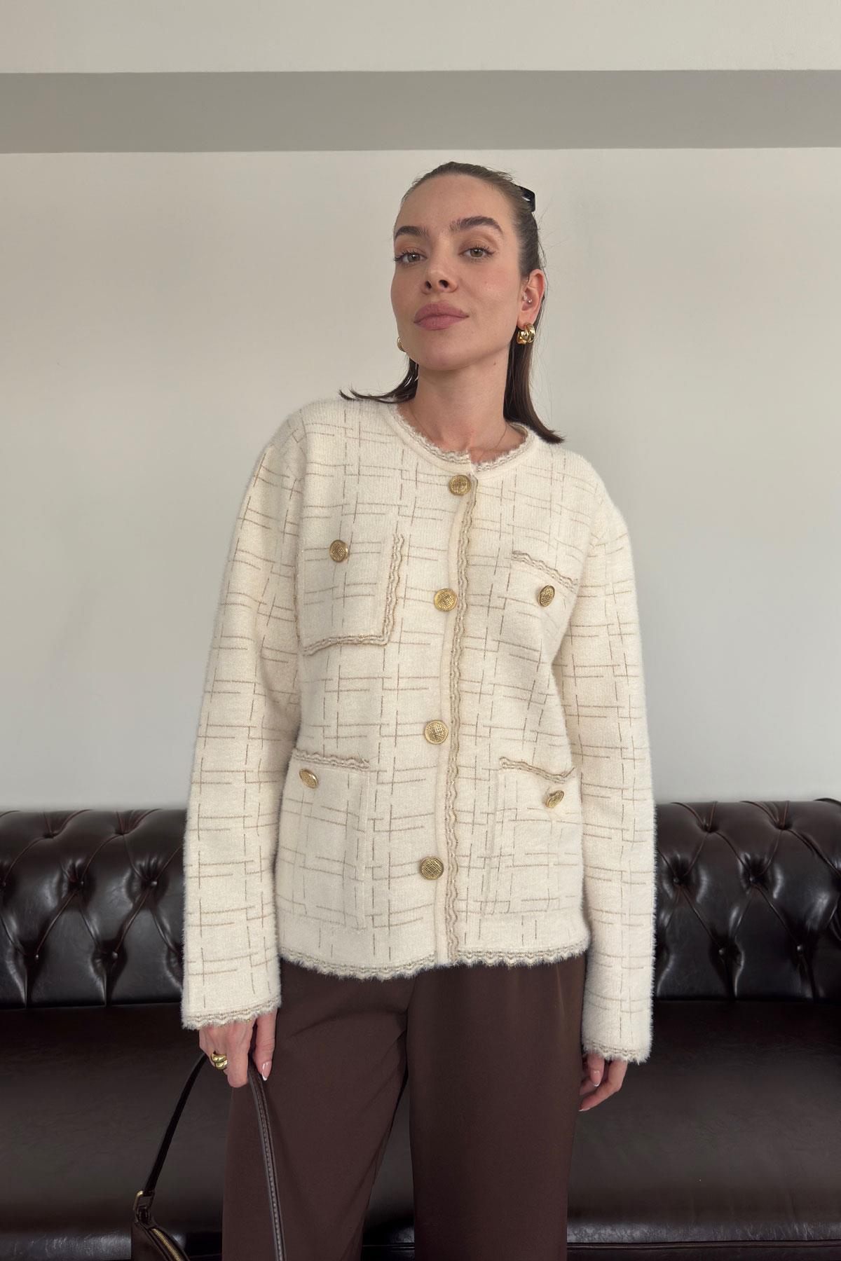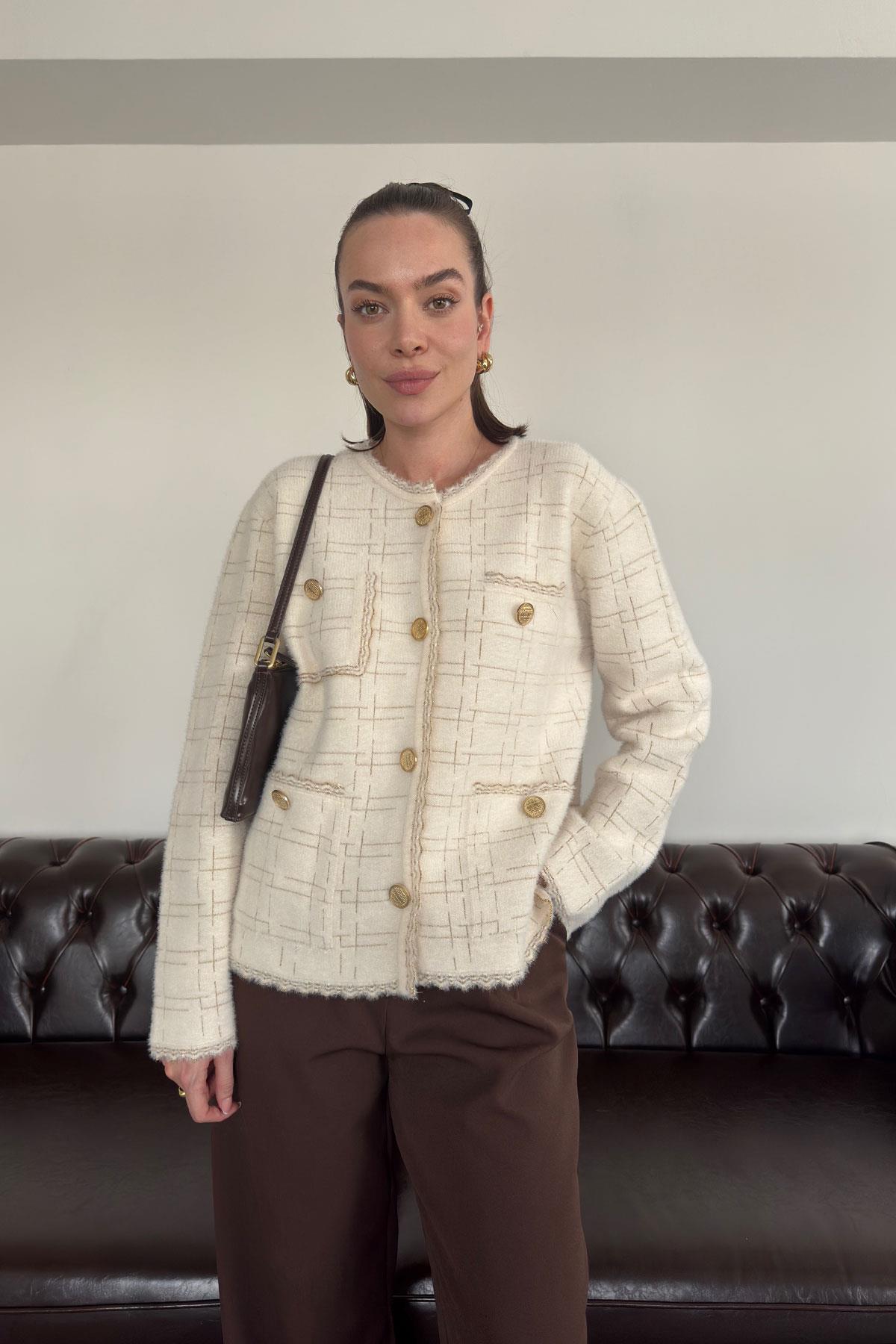 Ekose Desen Simli Triko Hırka- EKRU (QUTH241067-139)
