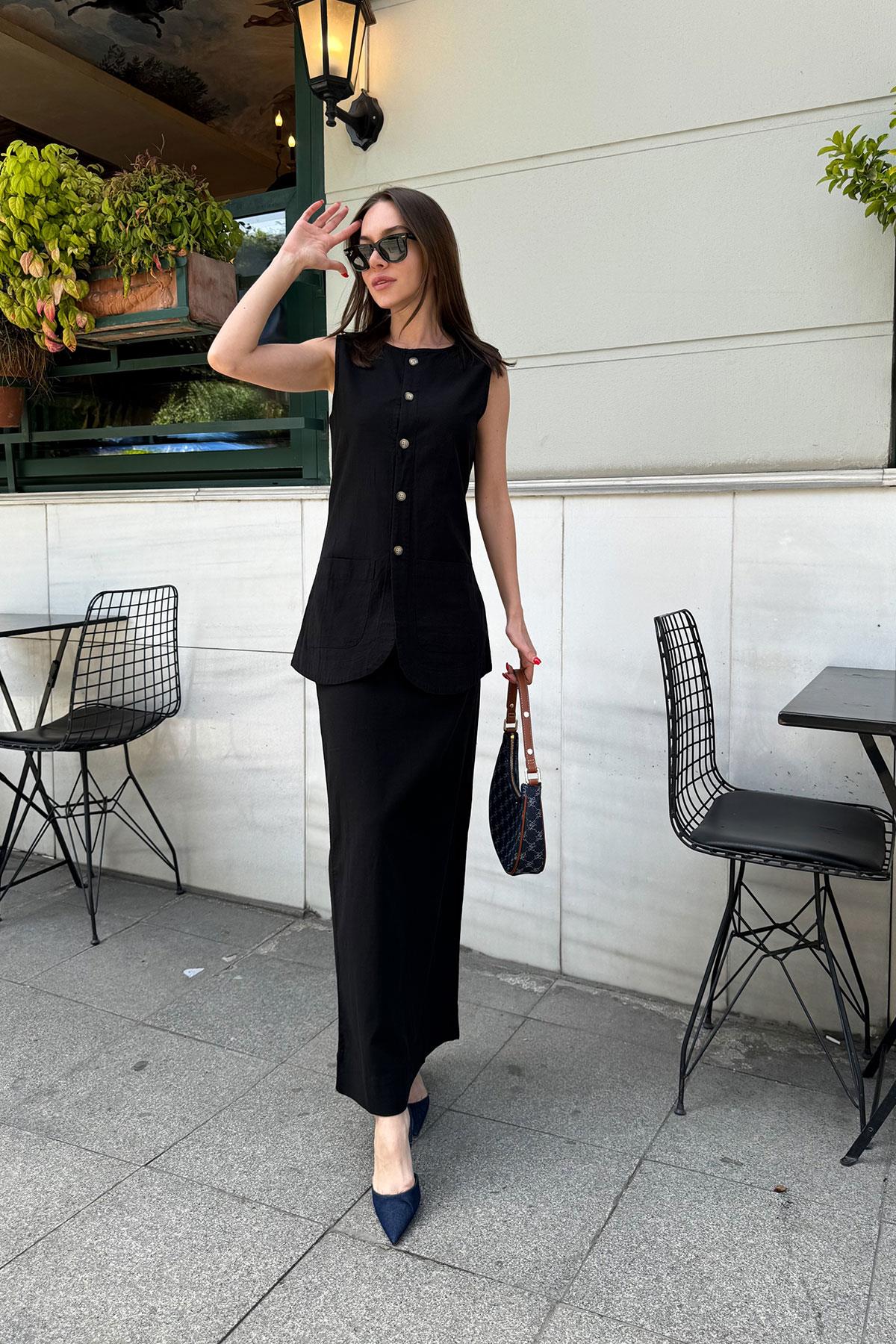 Etekli Bluz Takım SİYAH
