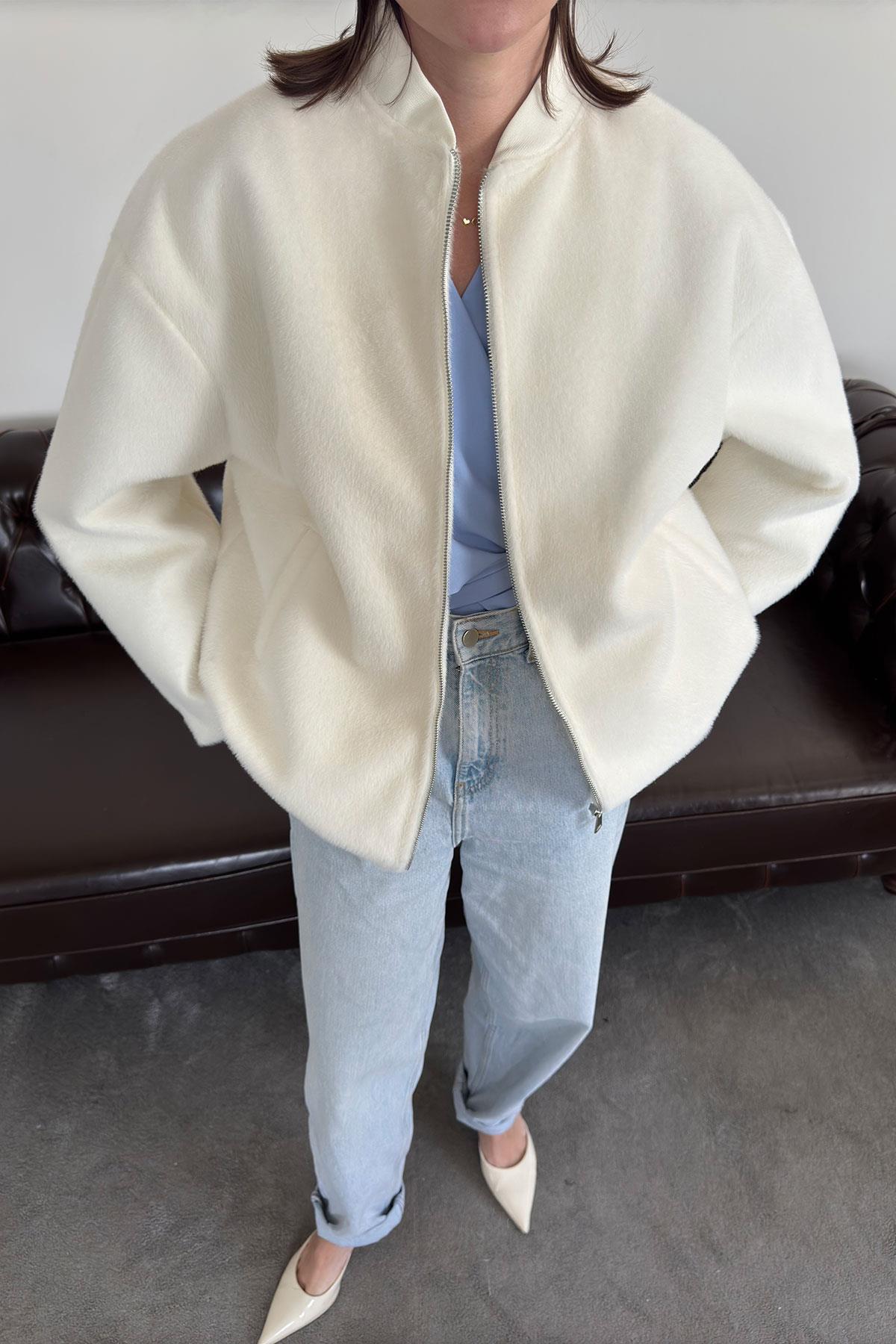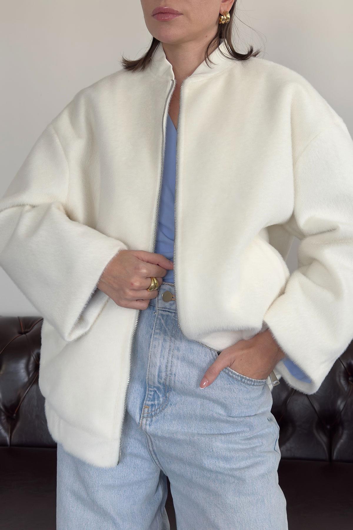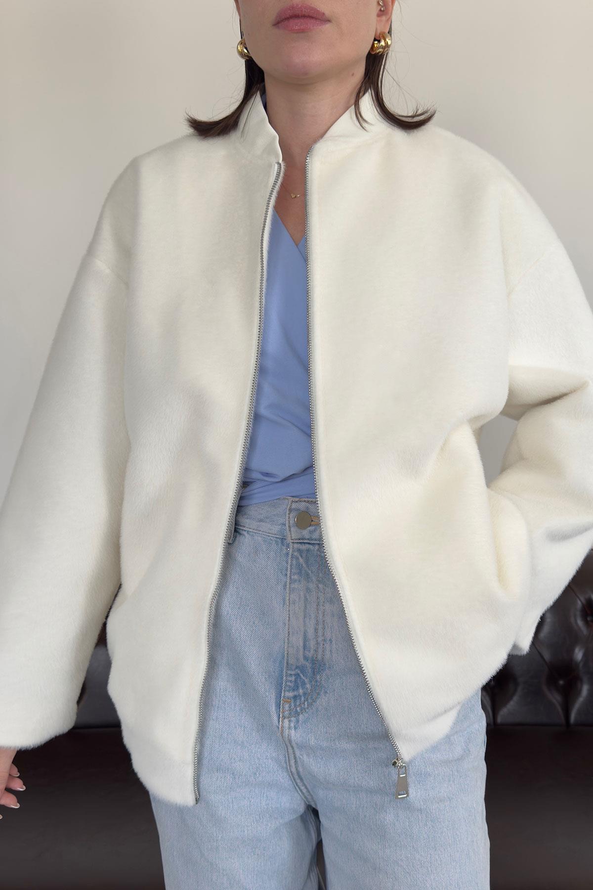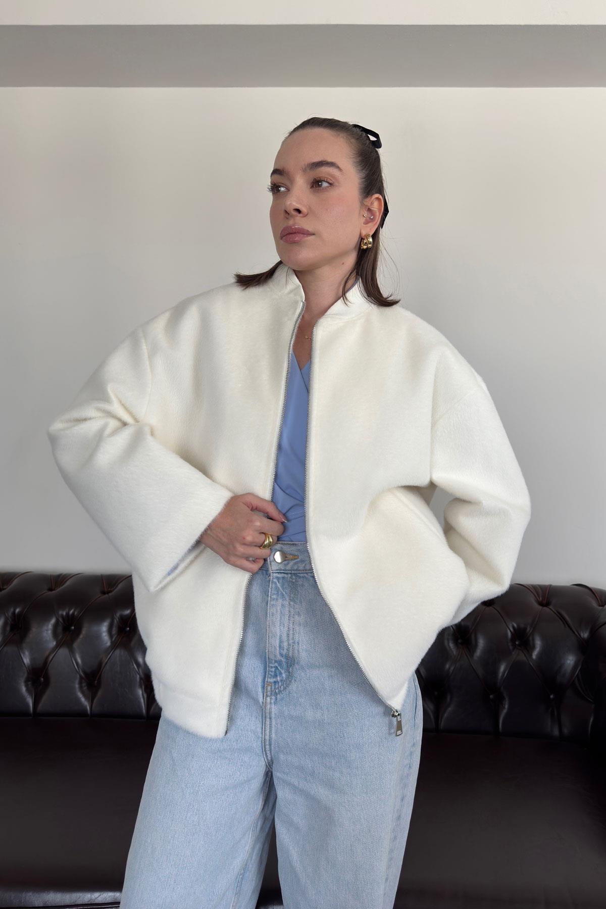 Fermuarlı Kürk Bomber Ceket- EKRU (MSY1170-139)