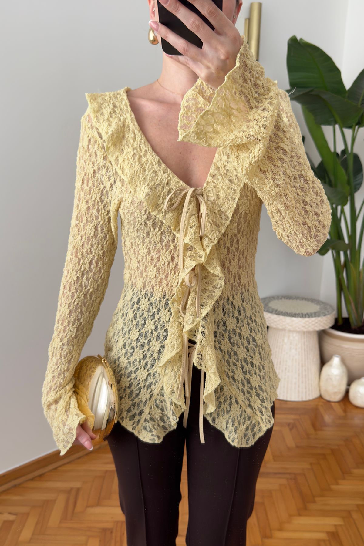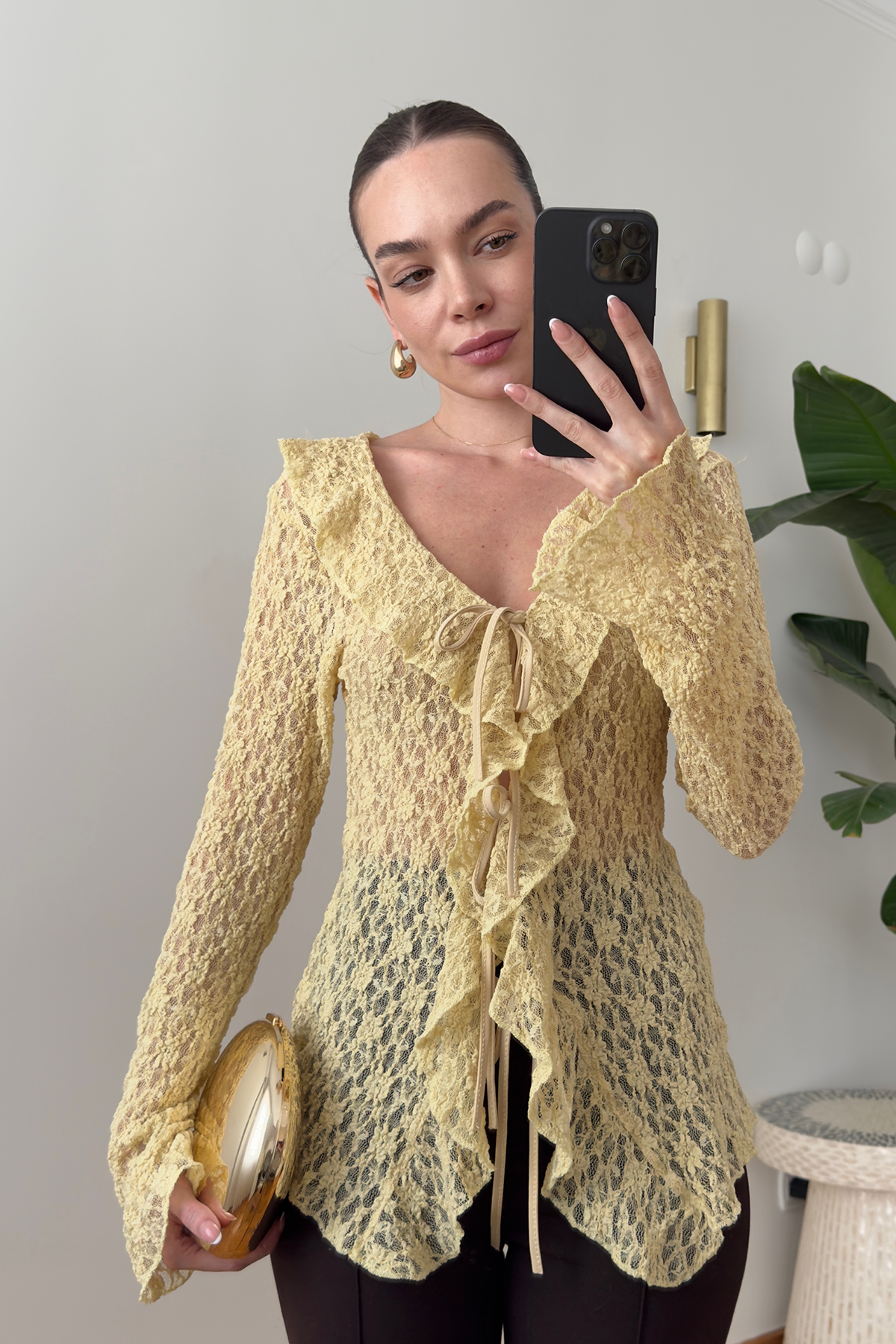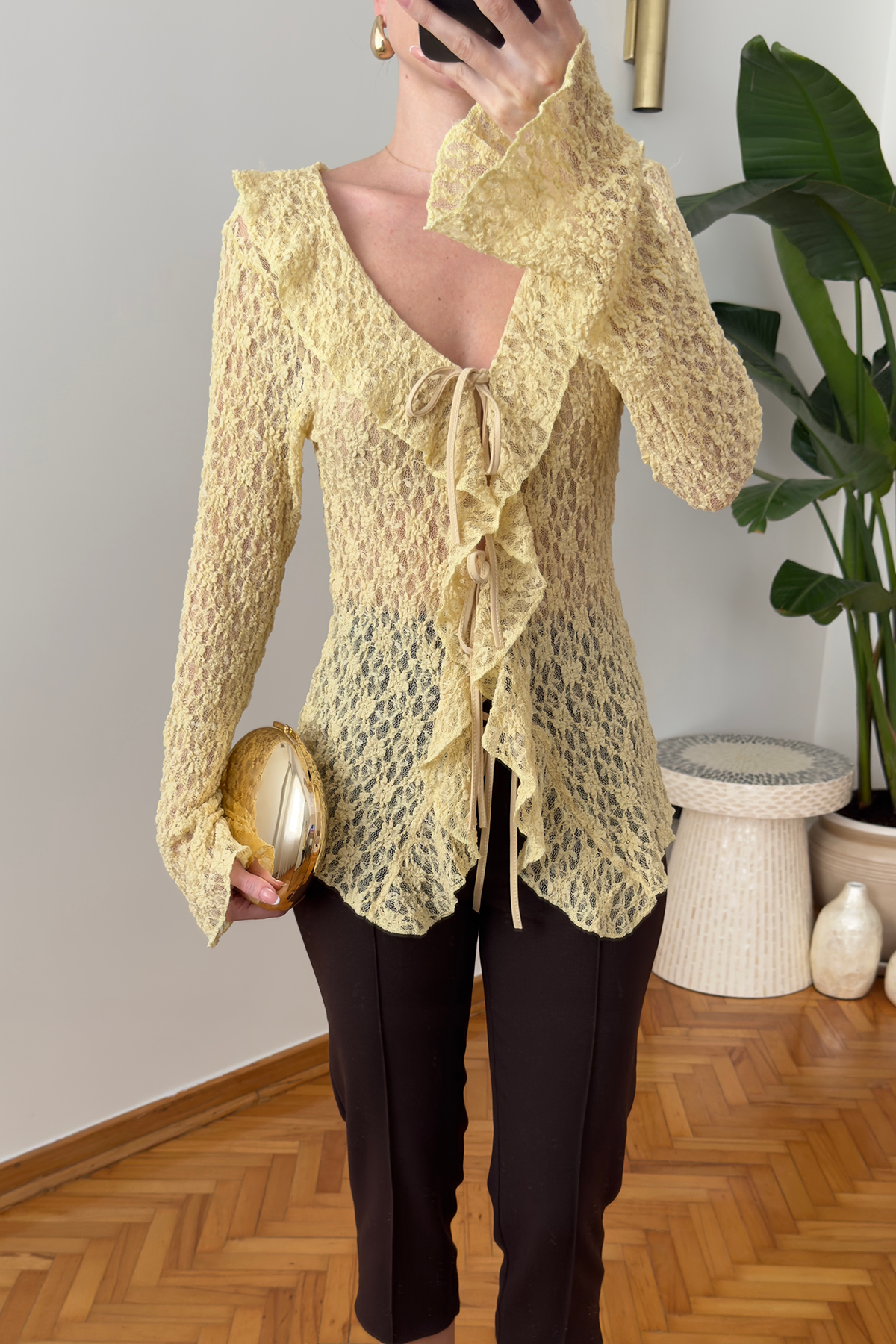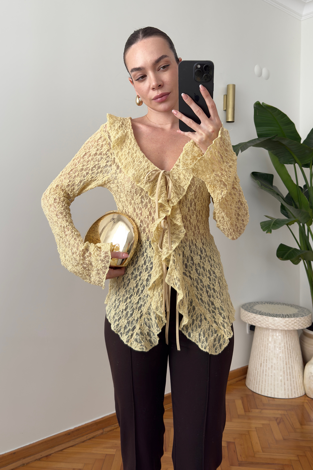 Fırfırlı Bağlamalı Özel Üretim Bluz- BEJ (MSY1160-106)