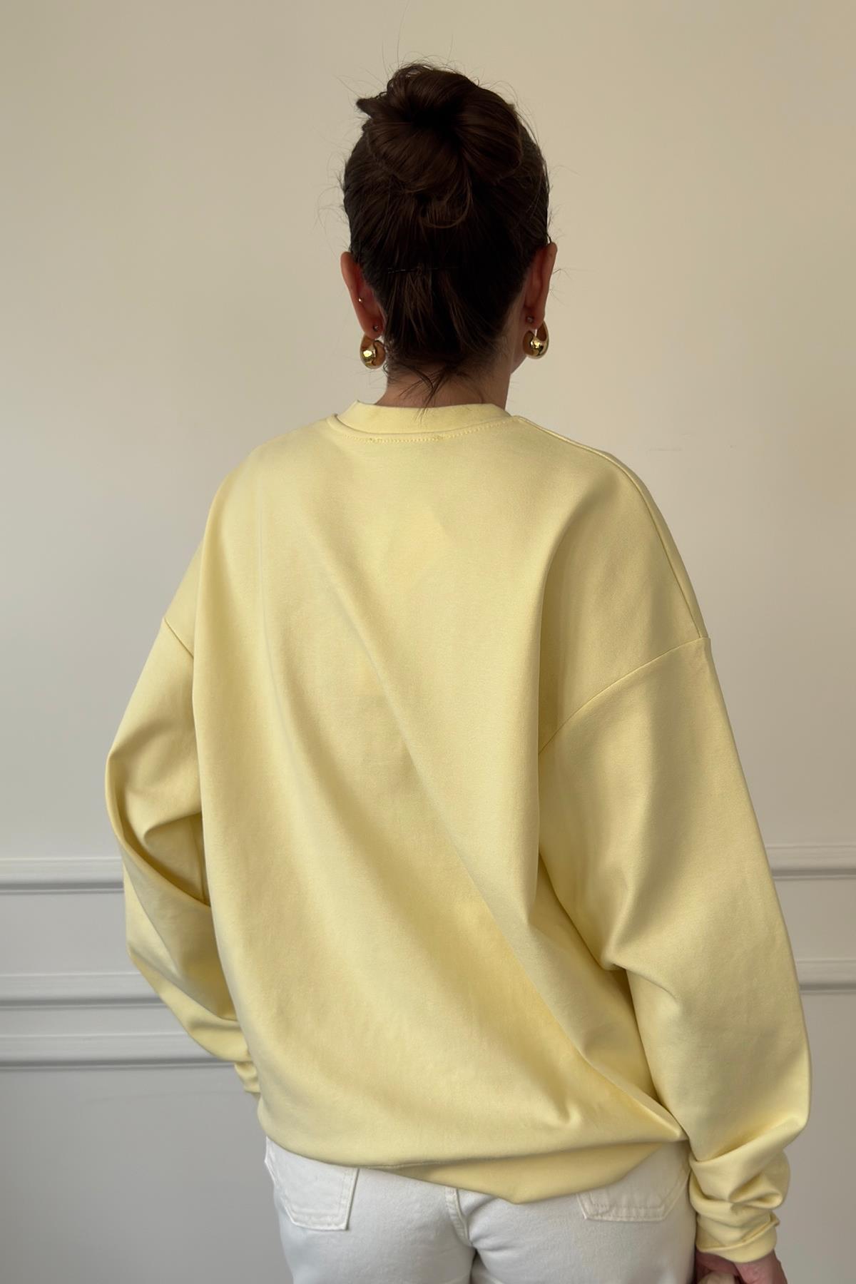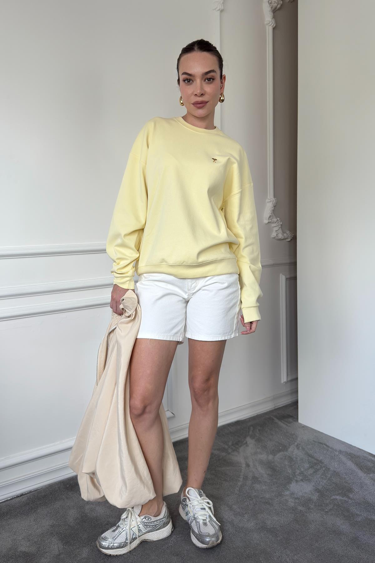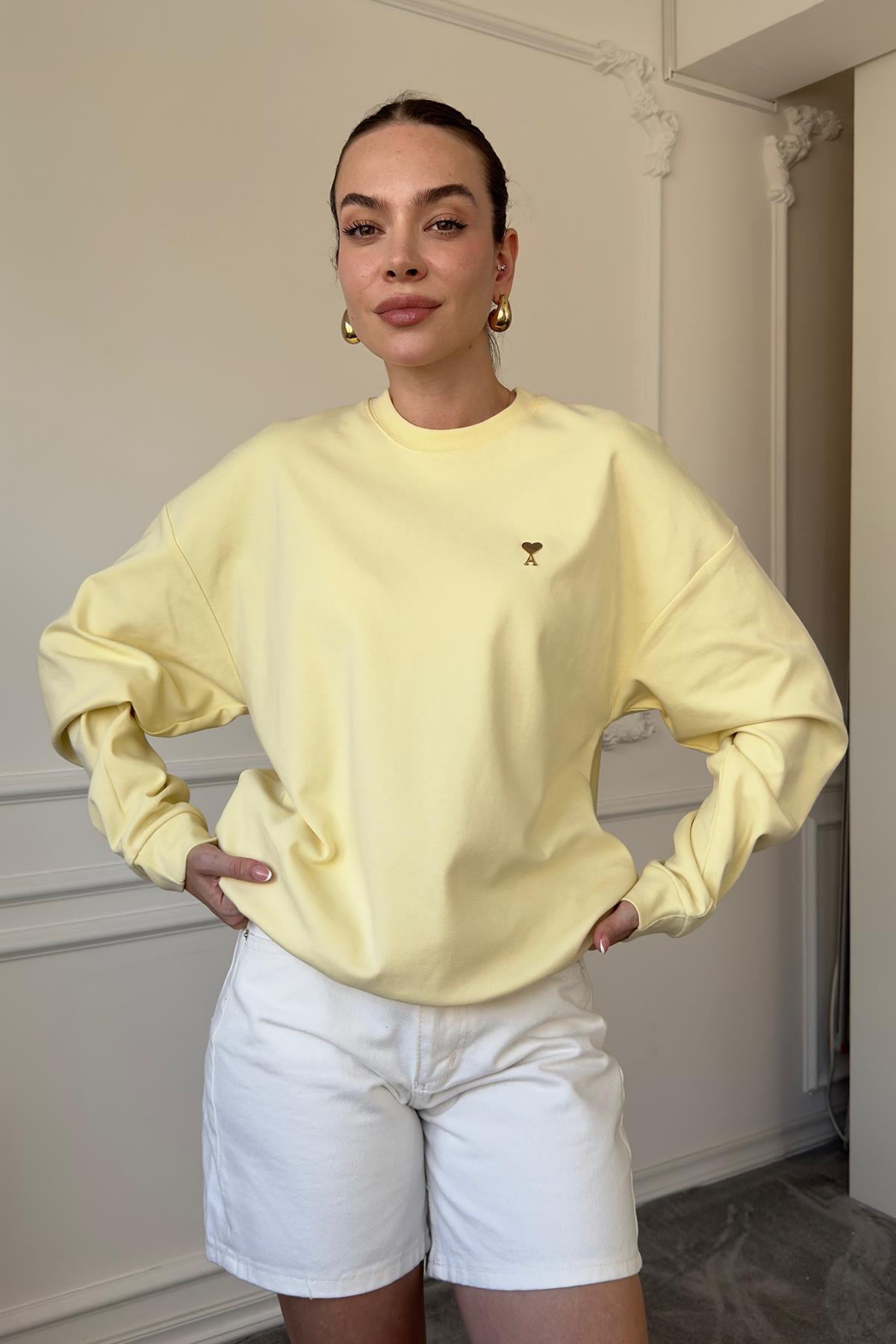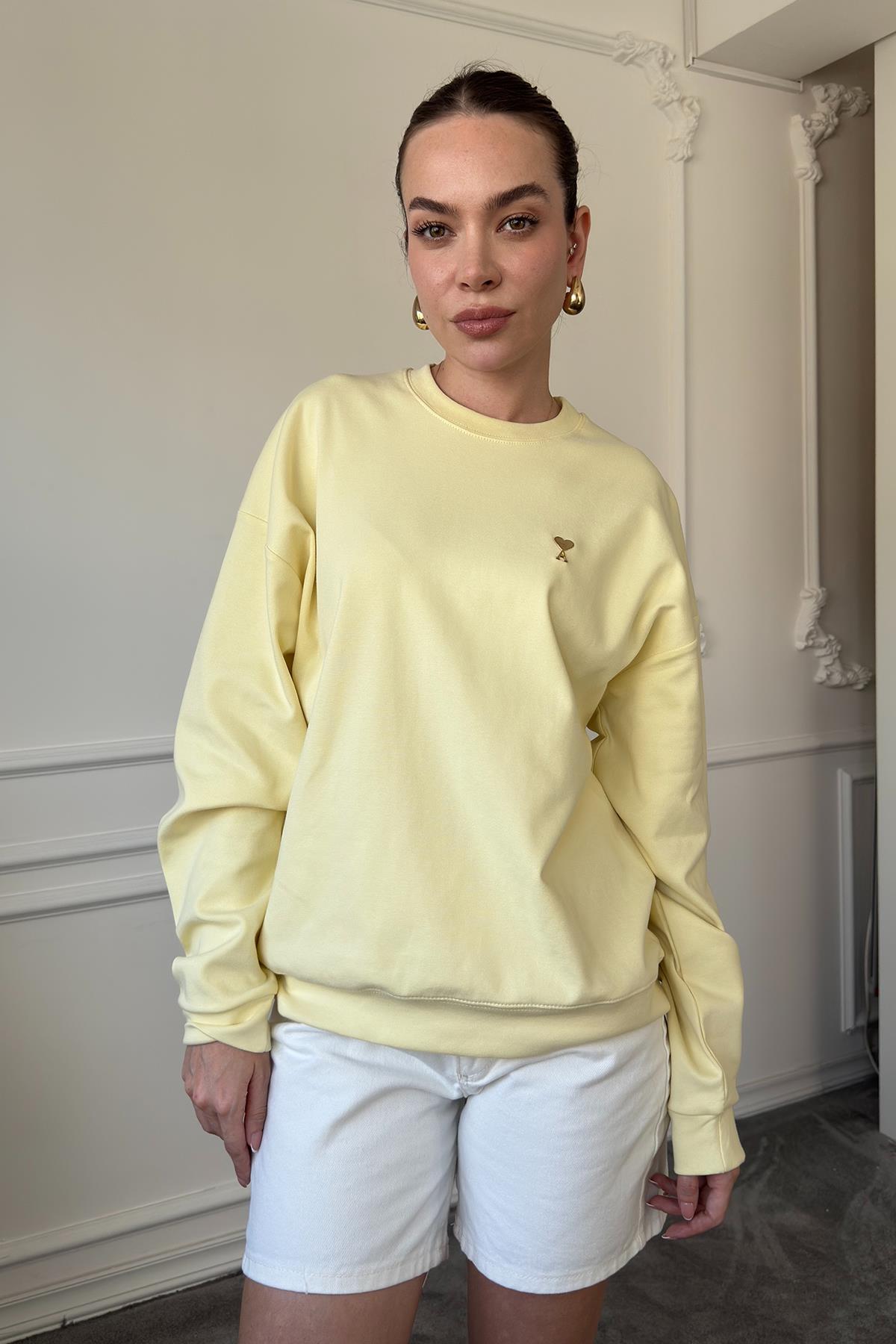 Kalp Broşlu Orj Sweatshirt- SARI (QUDS251002-141)