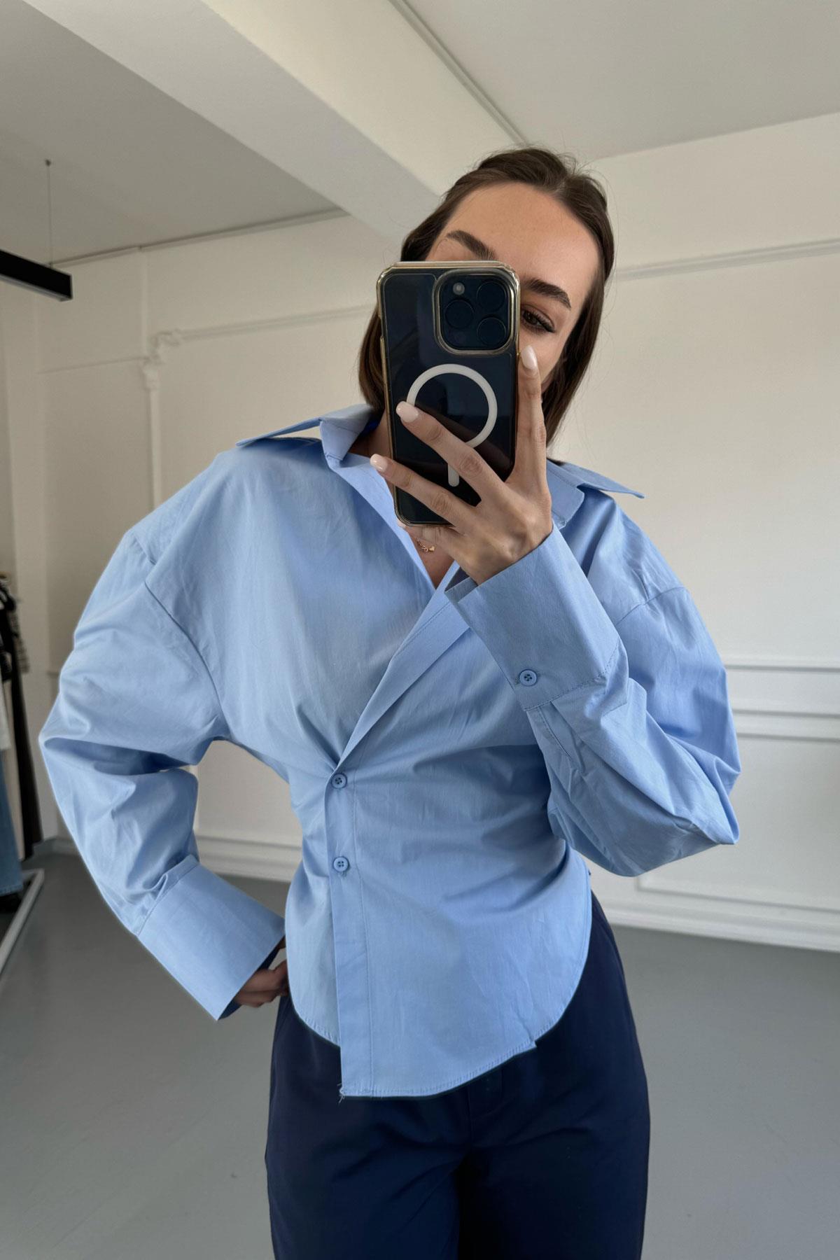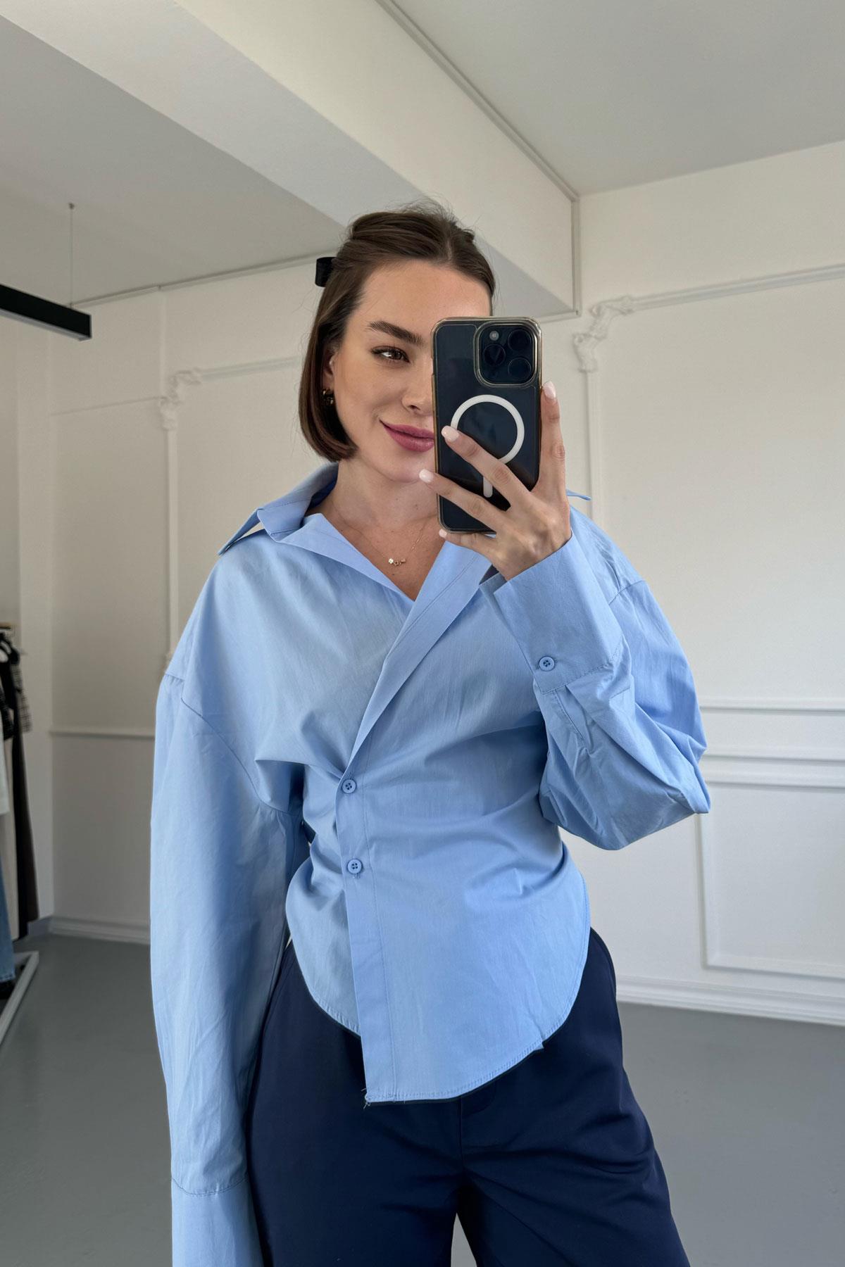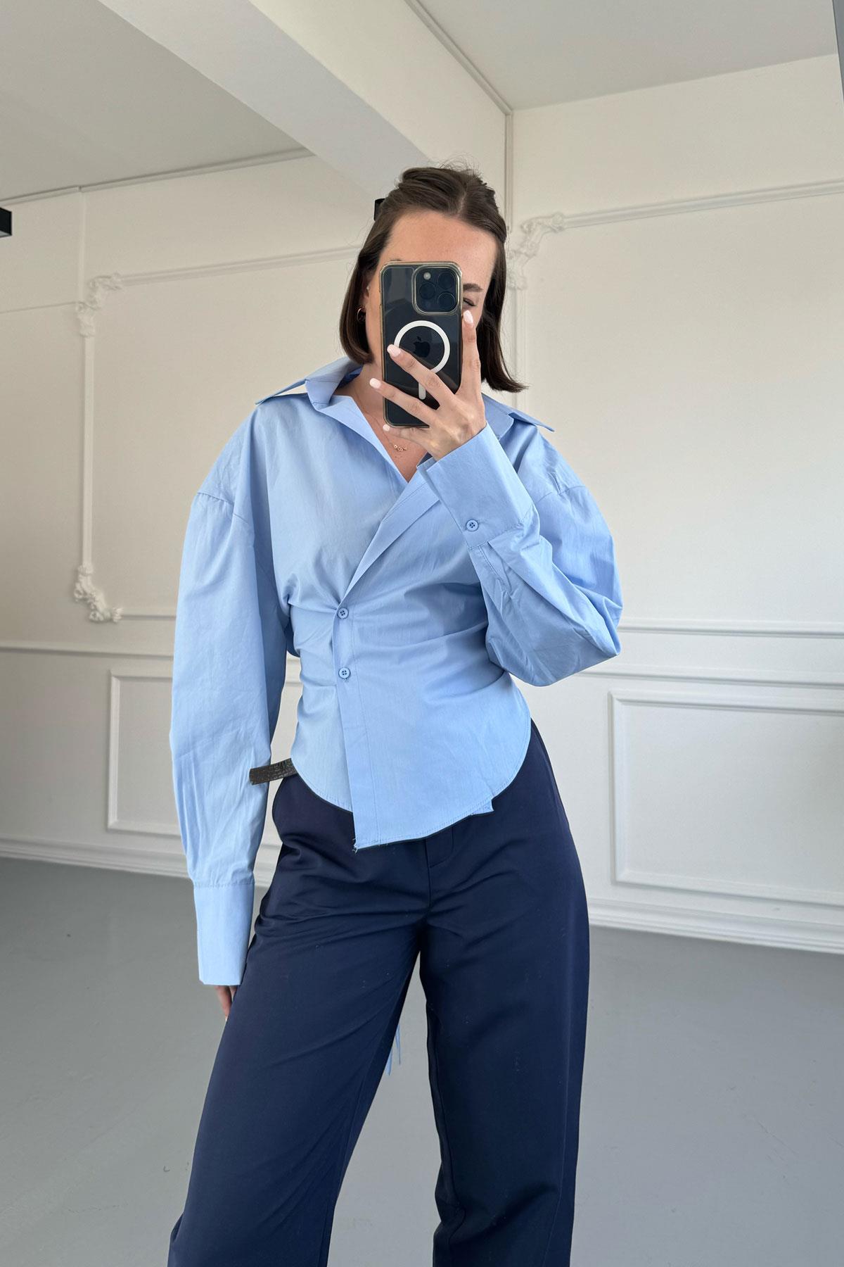 Kruvaze Bağlamalı Orijinal Polin Bluz MAVİ
