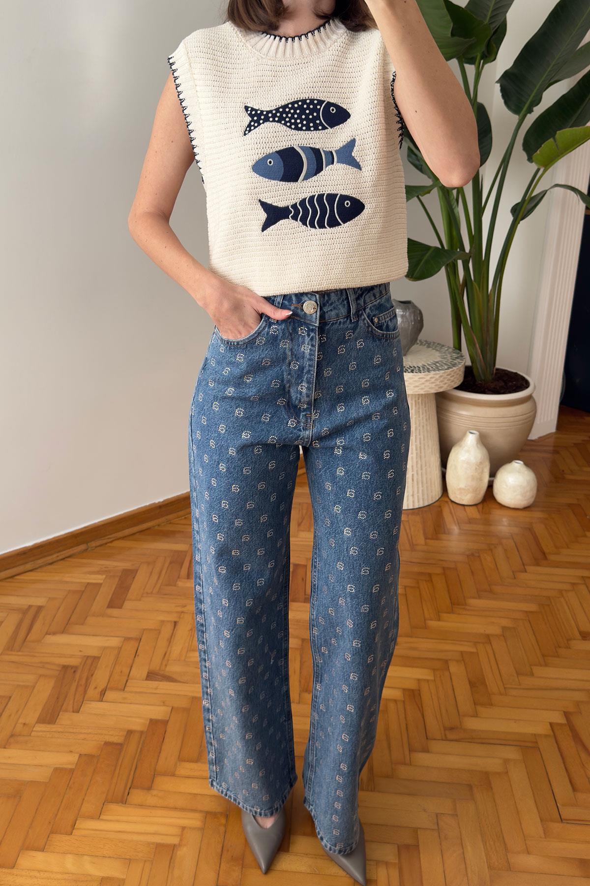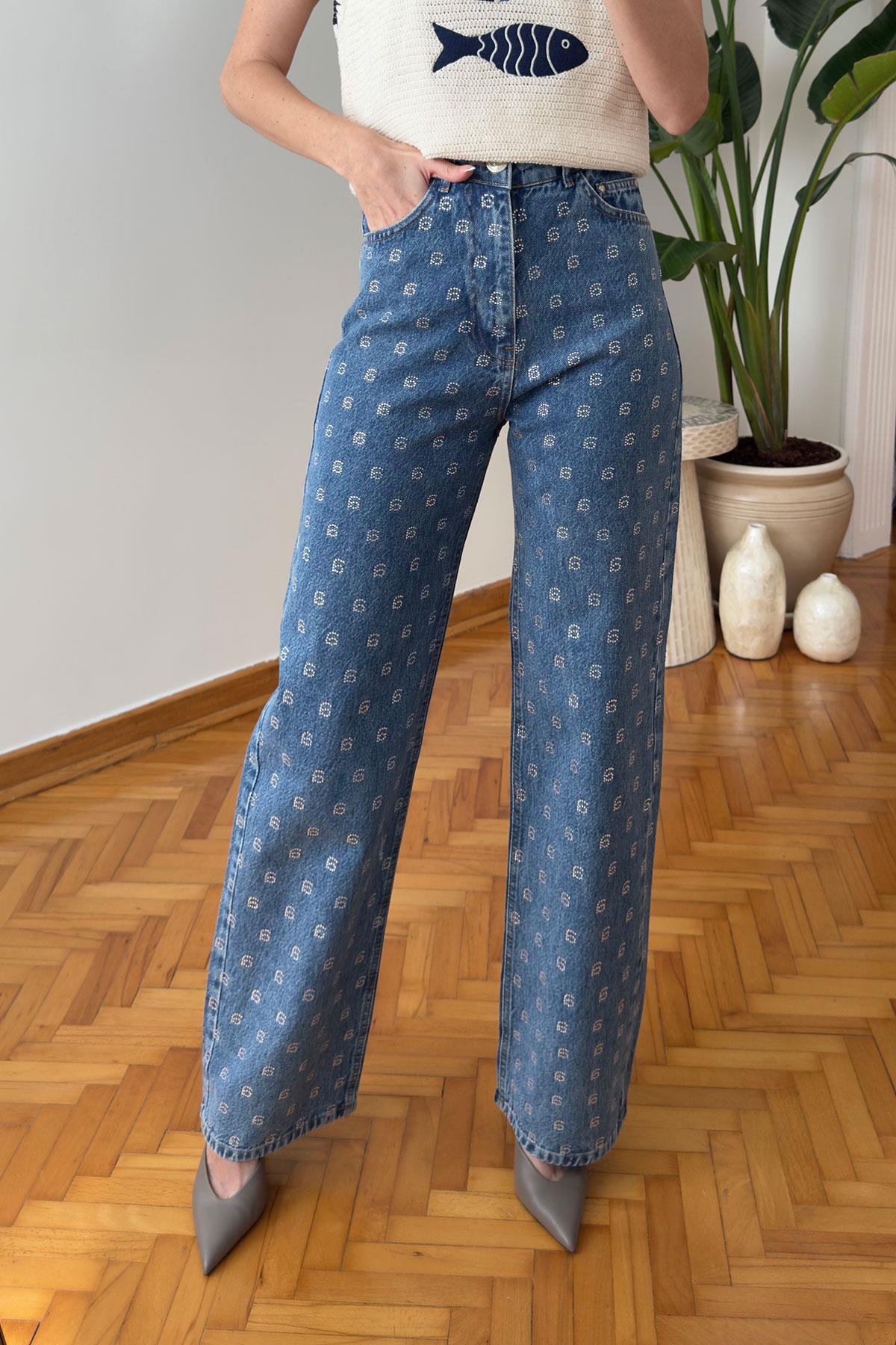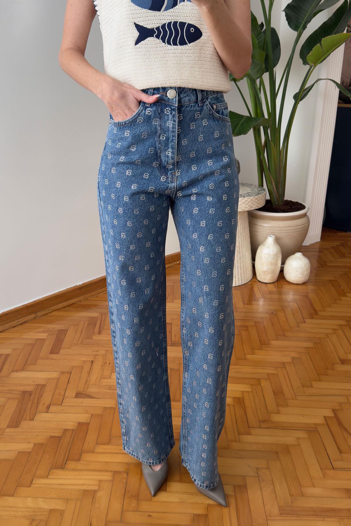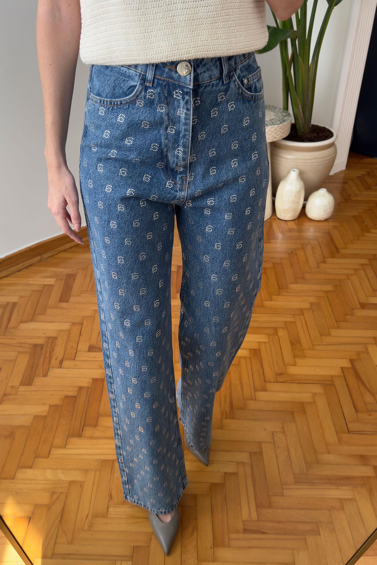 Marka Taş İşlemeli Jean- MAVİ (HV1011-107)