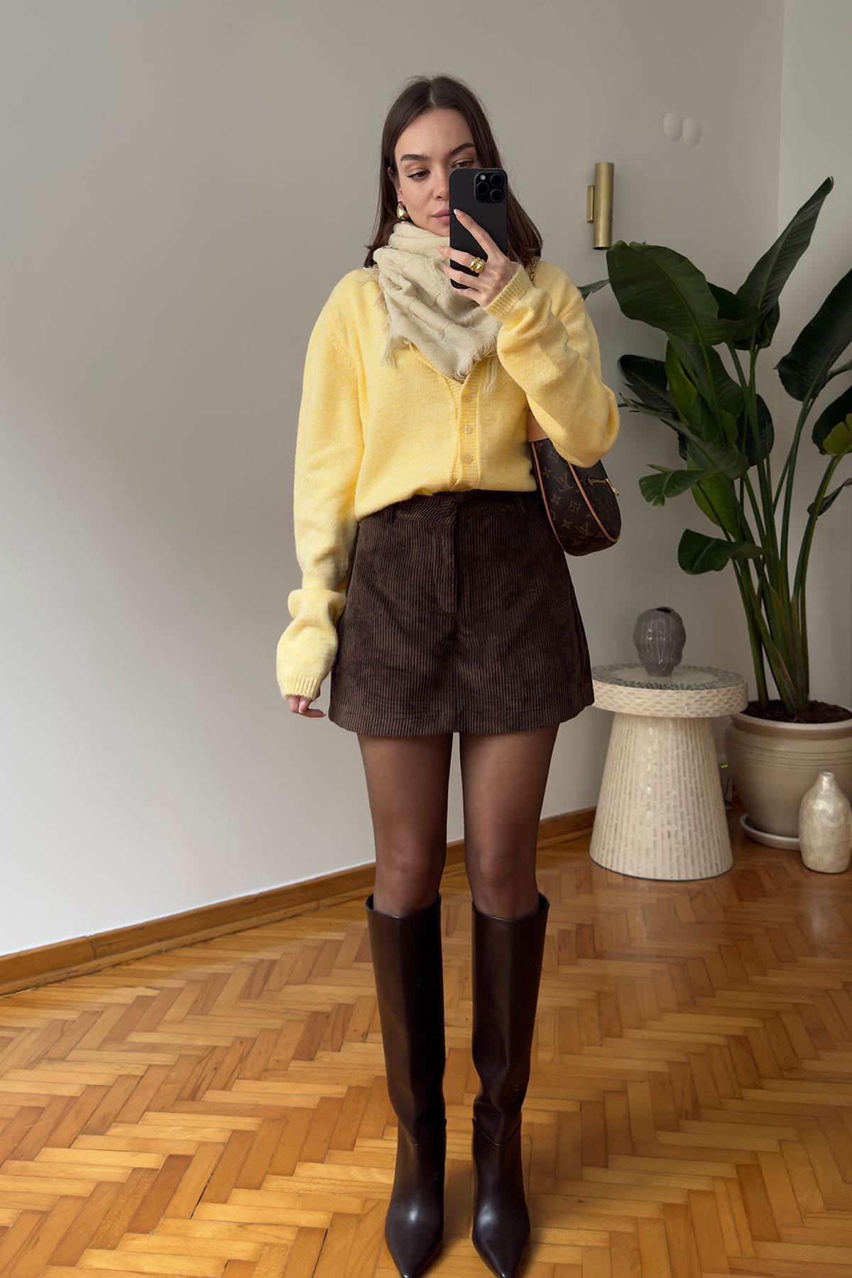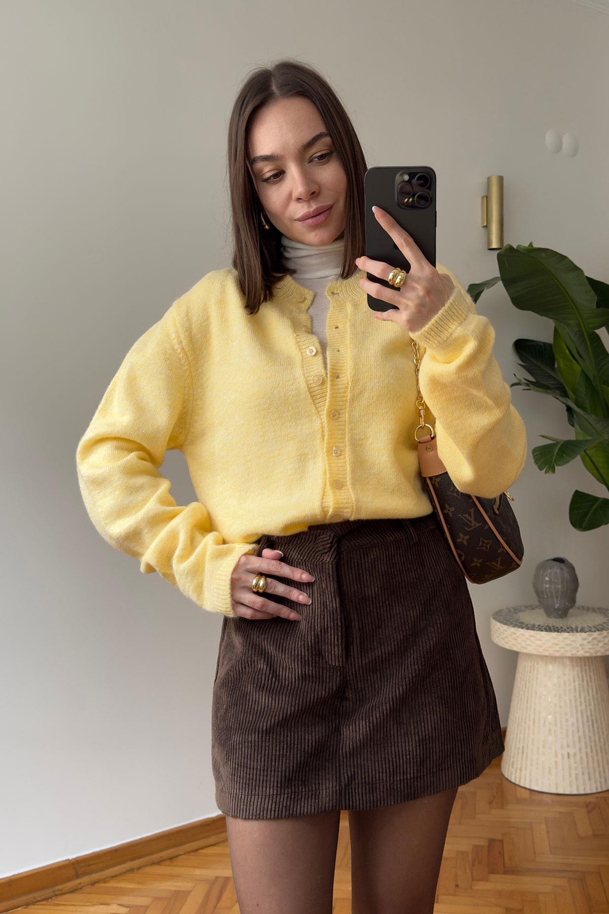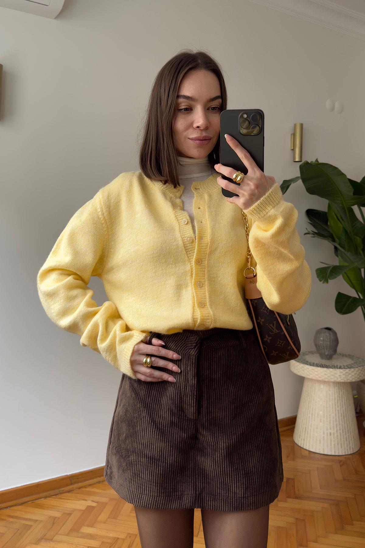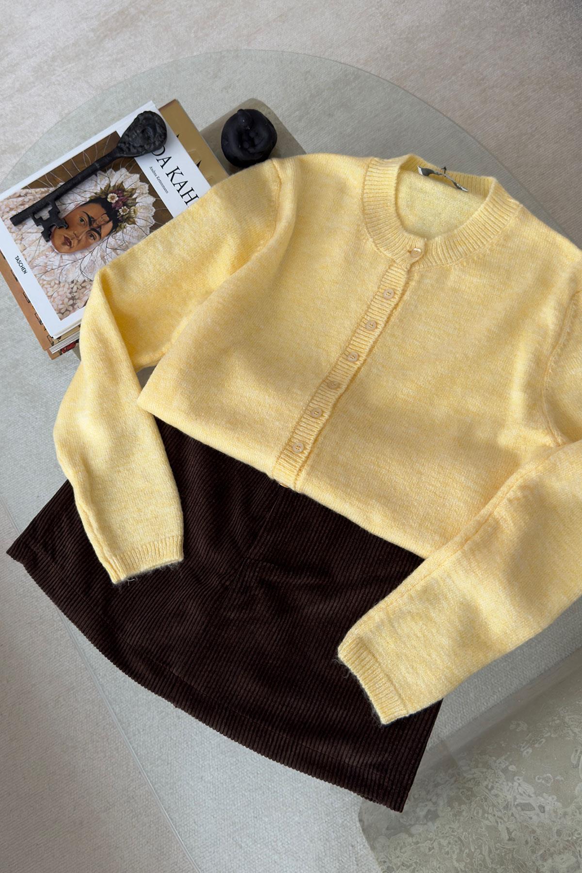 Önü Düğmeli Yeni Sezon Triko Hırka- SARI (AL7005-141)