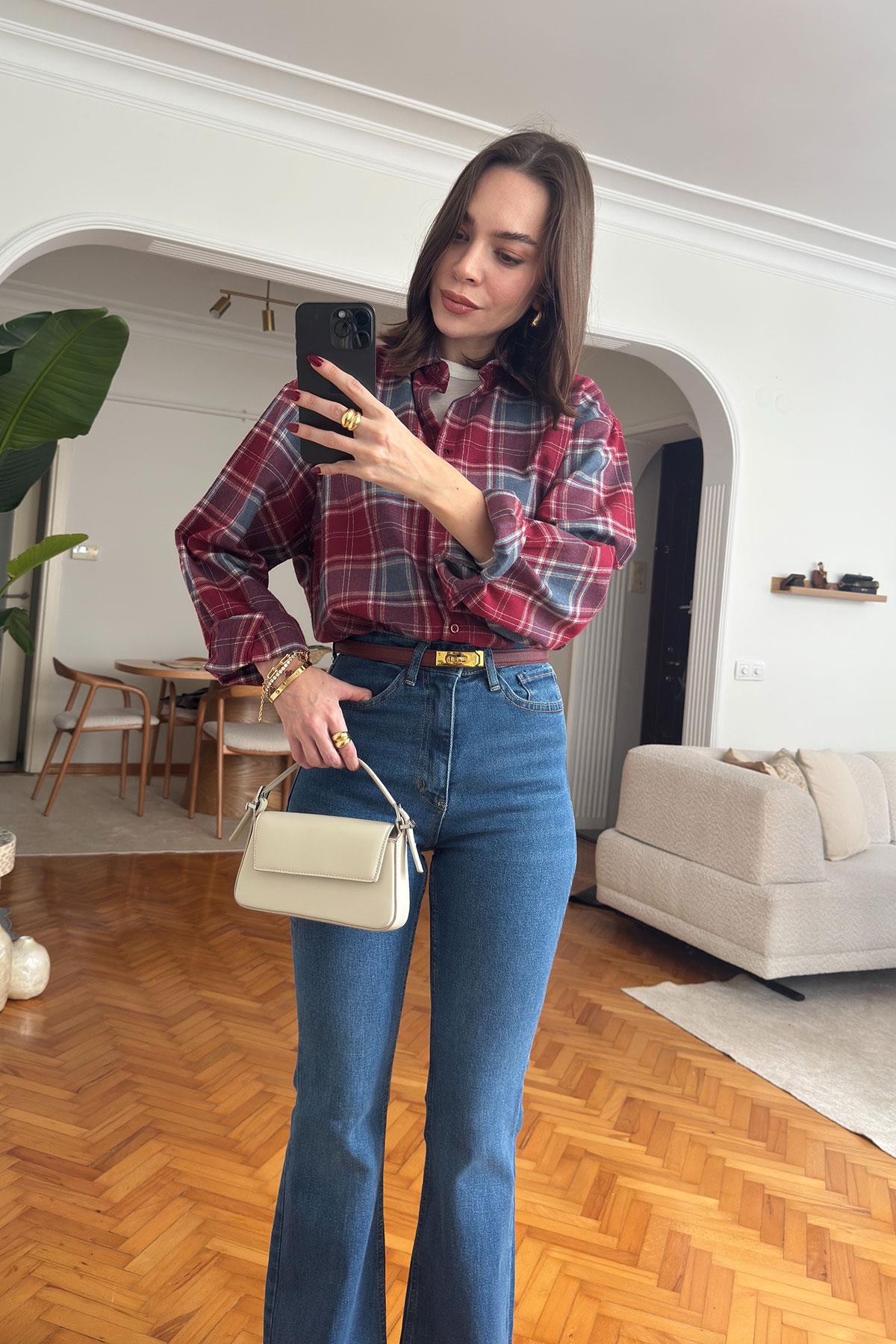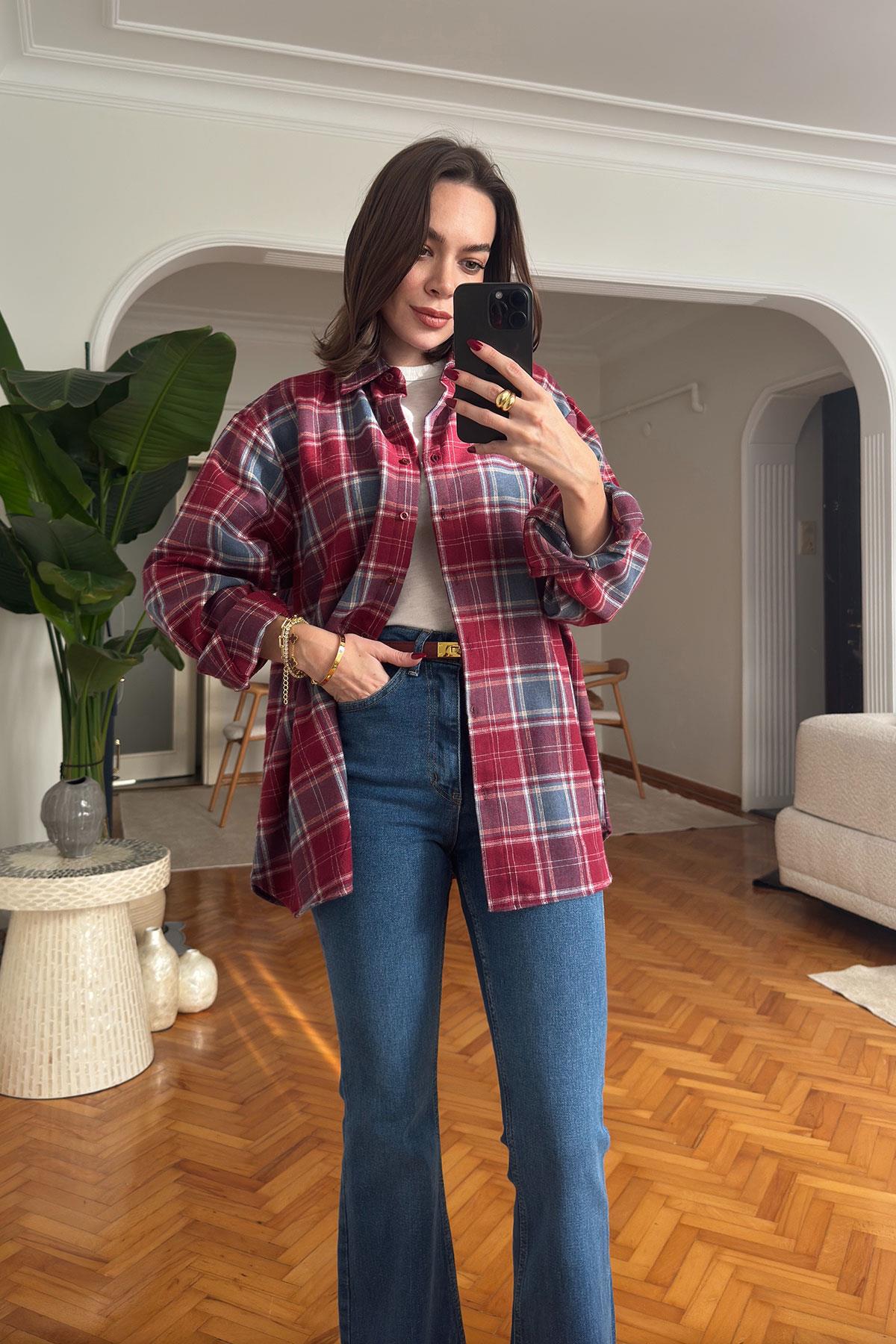 Oversize Ekose Desen Oduncu Gömlek- KIRMIZI (QUDG251045-110)