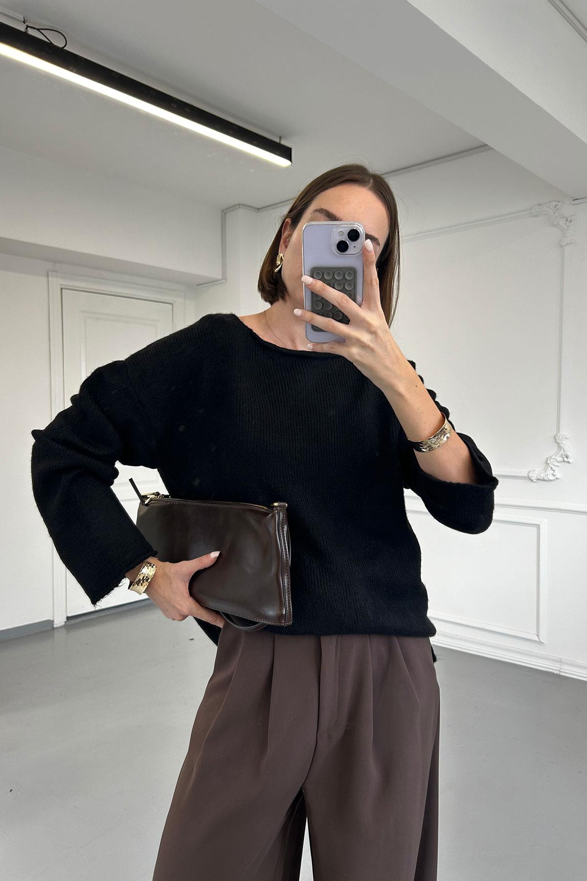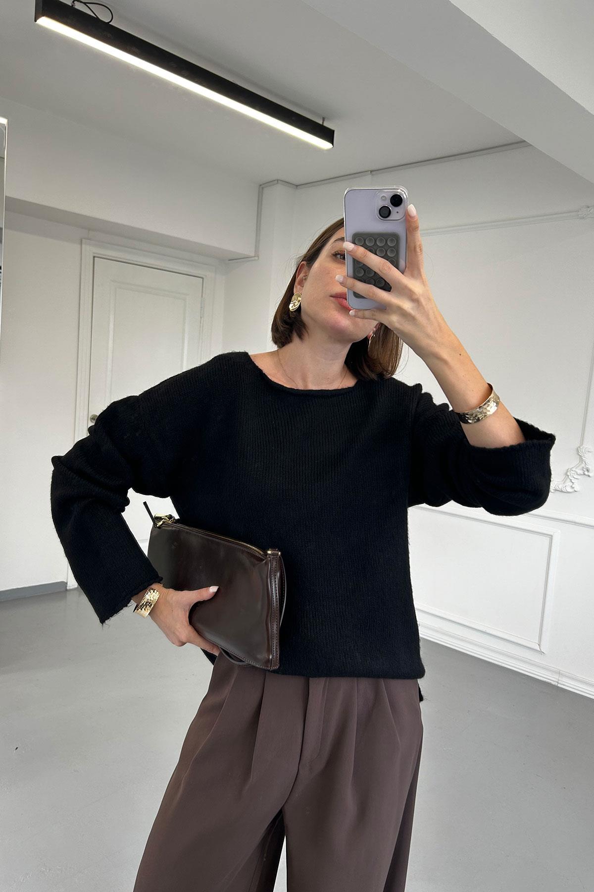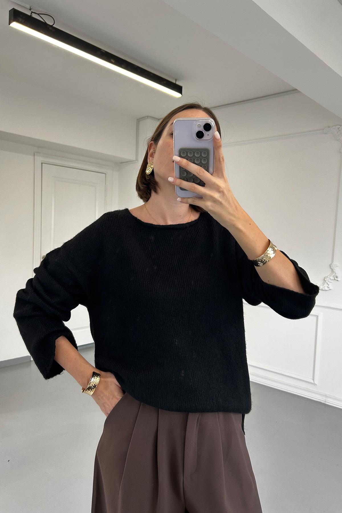 Oversize Orijinal Triko Kazak- SİYAH (CR21001-100)