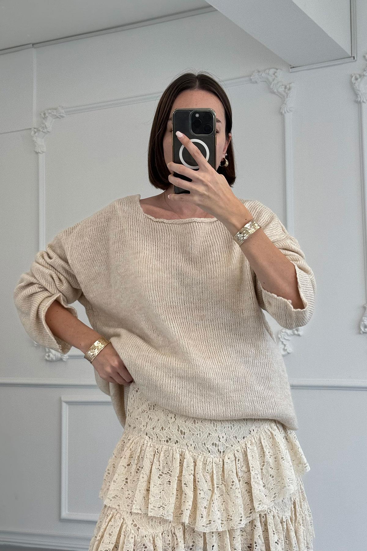 Oversize Orijinal Triko Kazak- TAŞ (CR21001-165)