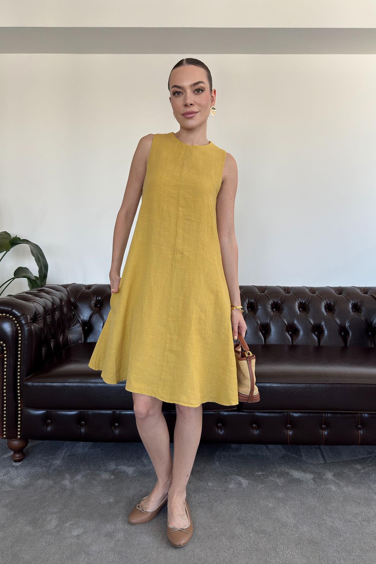 Sıfır Kol Keten Premium Elbise- SARI (MS3202-141)