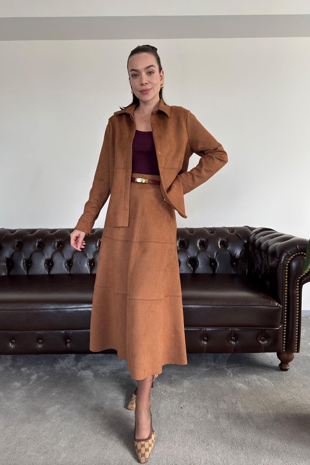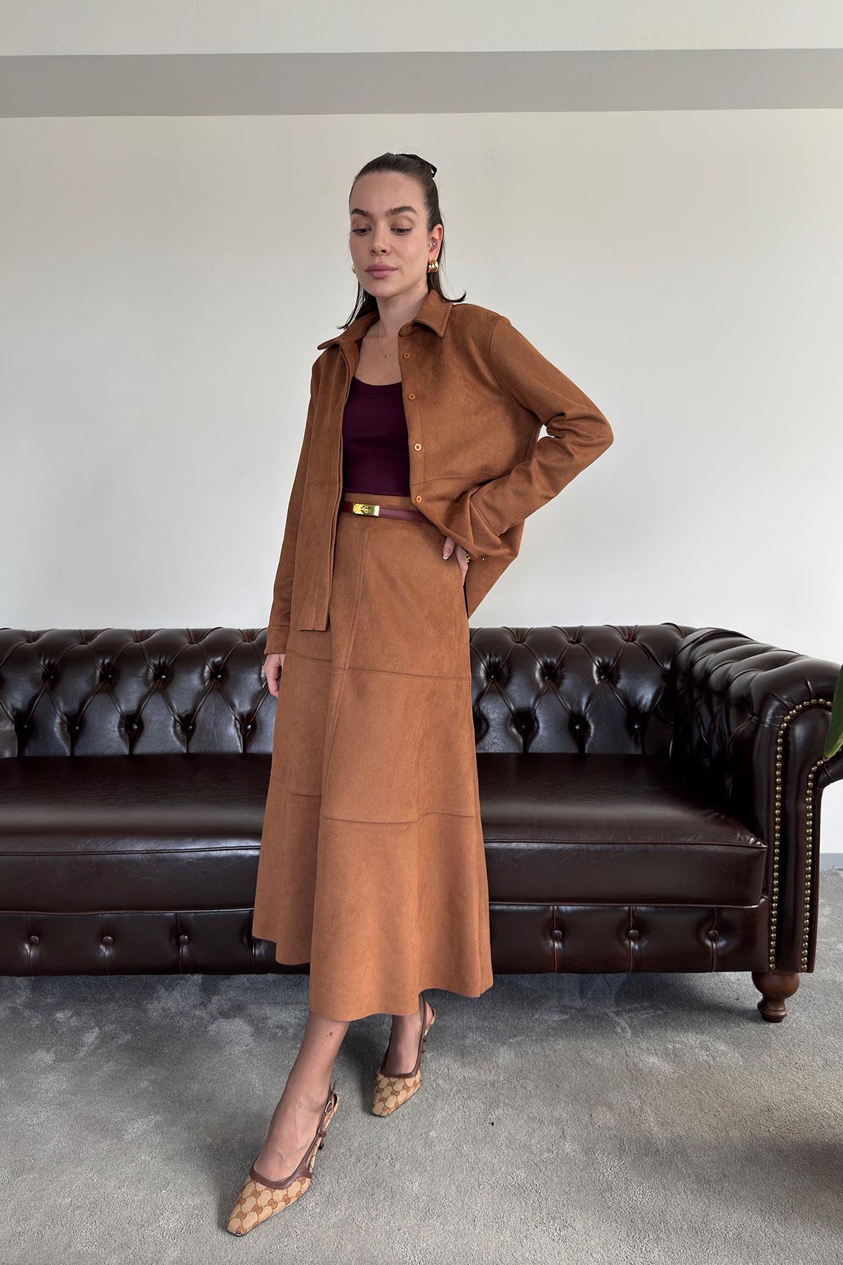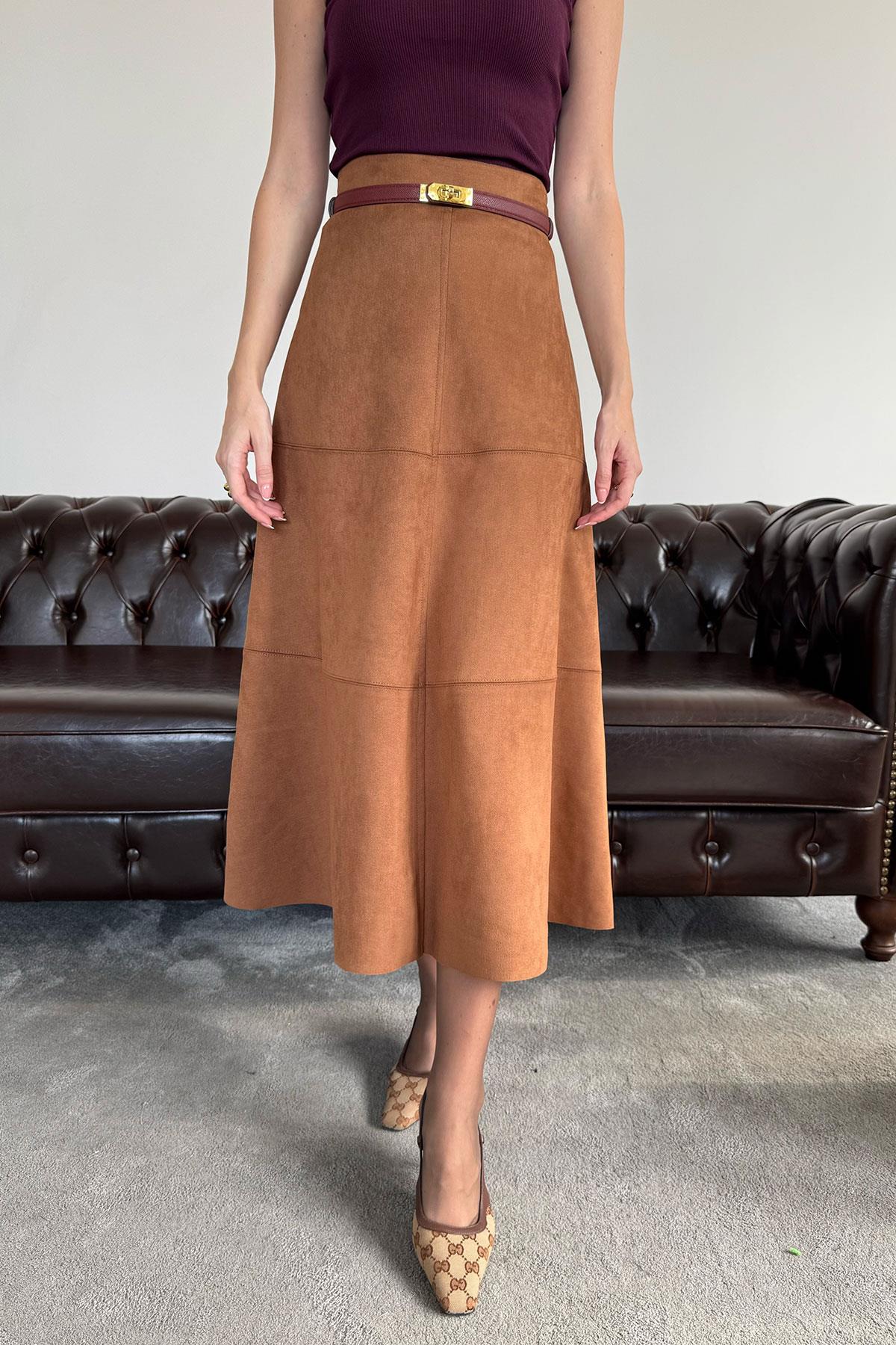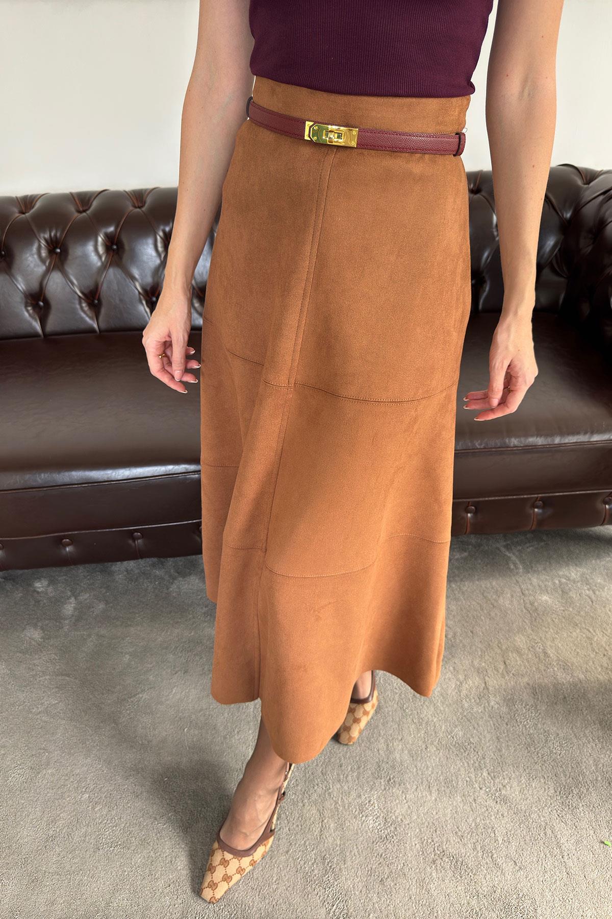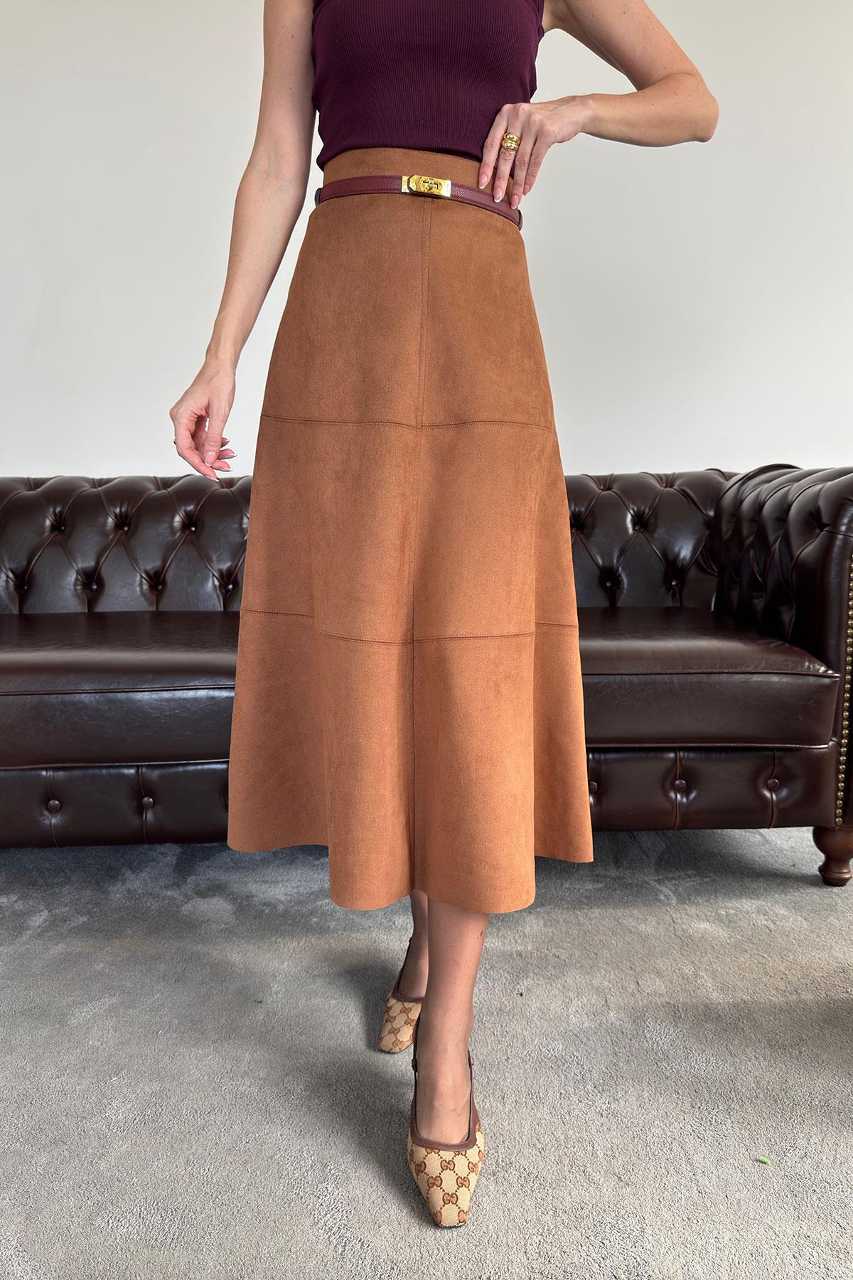 Uzun Süet Etek- BEJ Süet Uzun Etek- TABA
