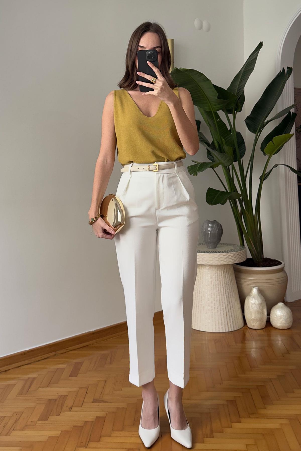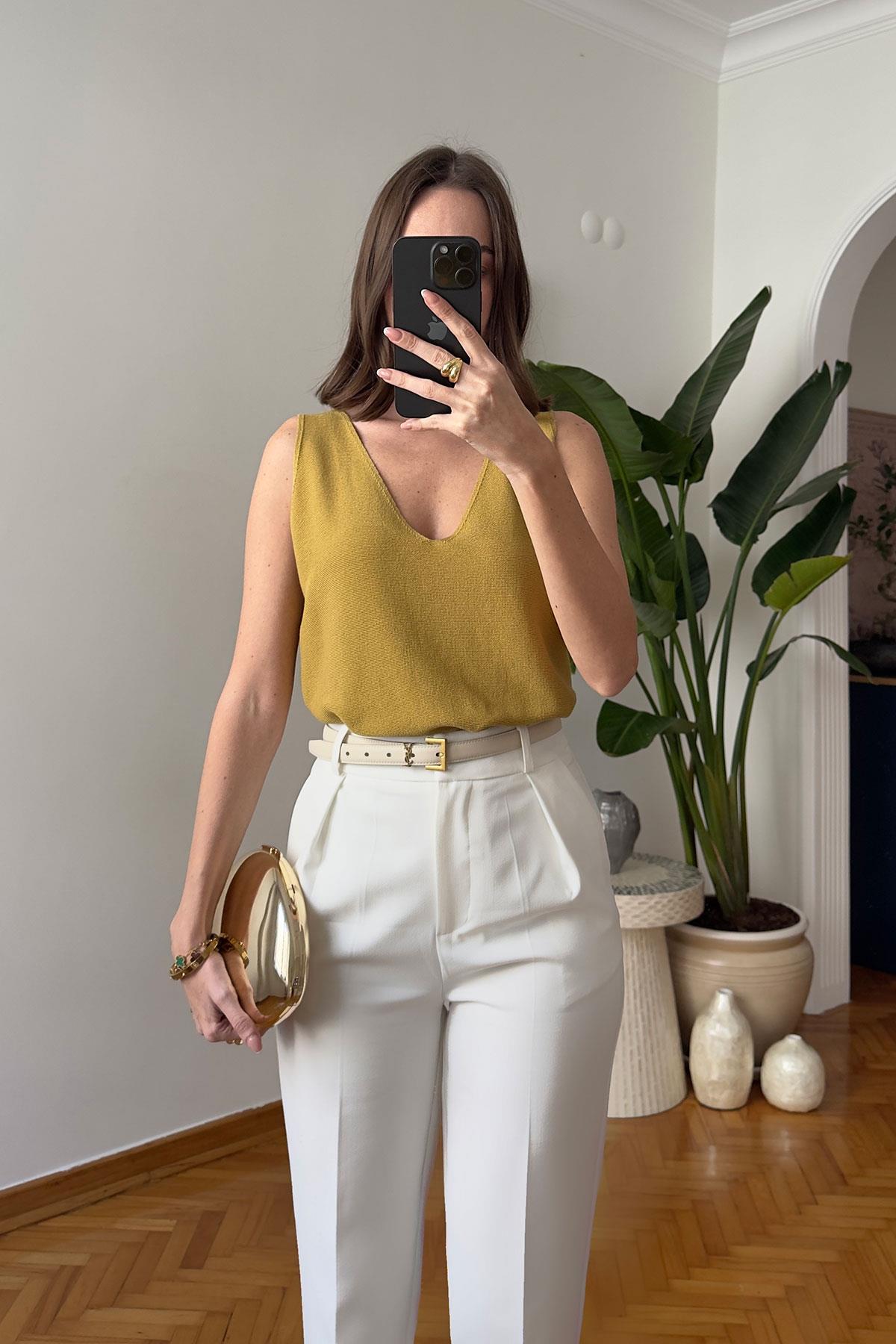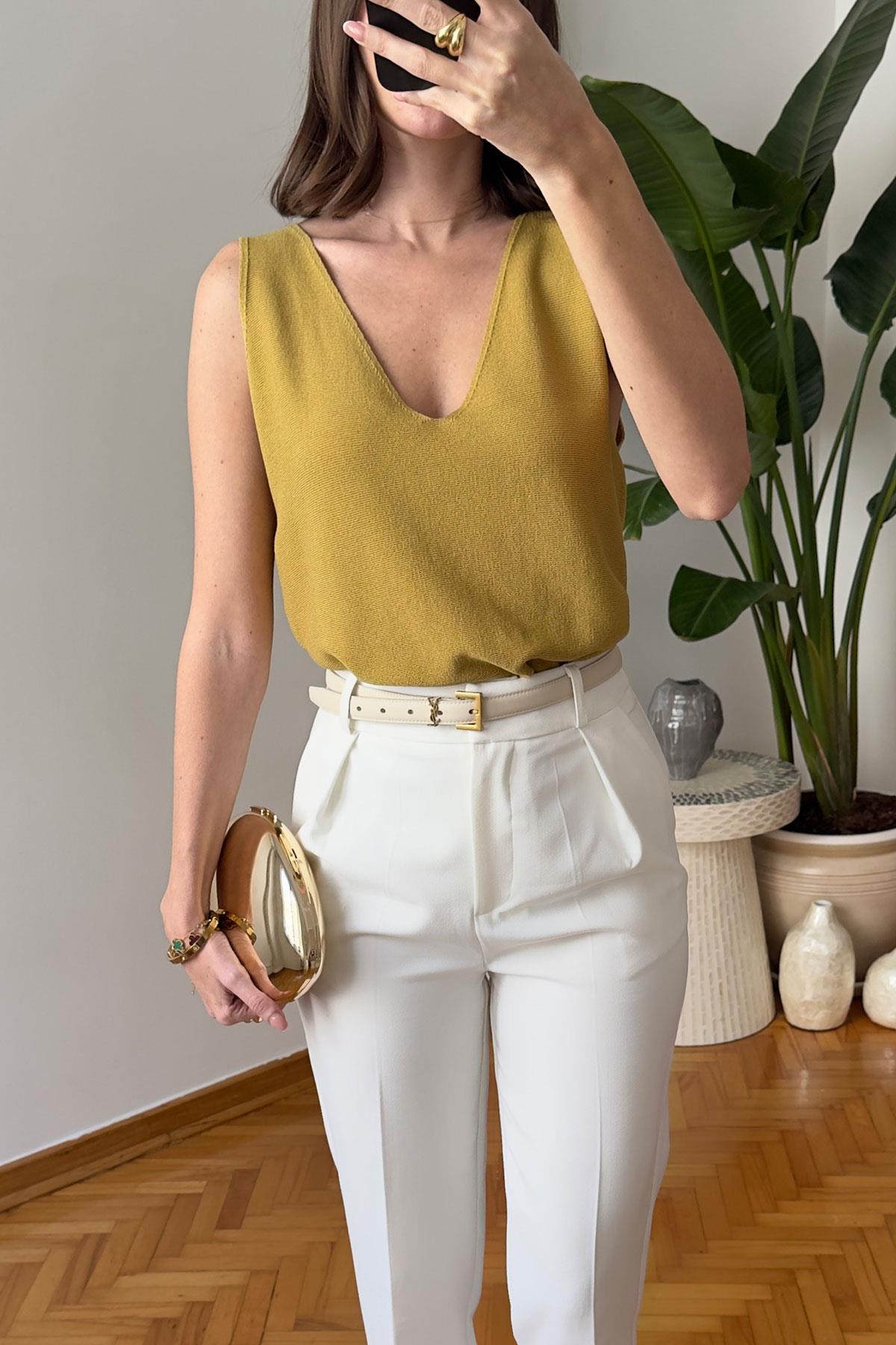 V Yaka Mevsimlik Premium Süveter- EKRU V Yaka Mevsimlik Premium Süveter- HARDAL